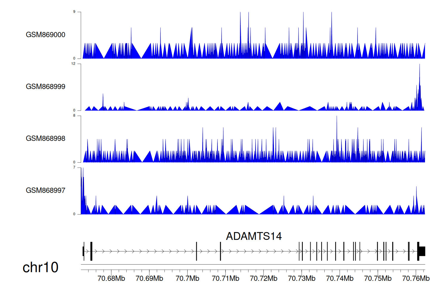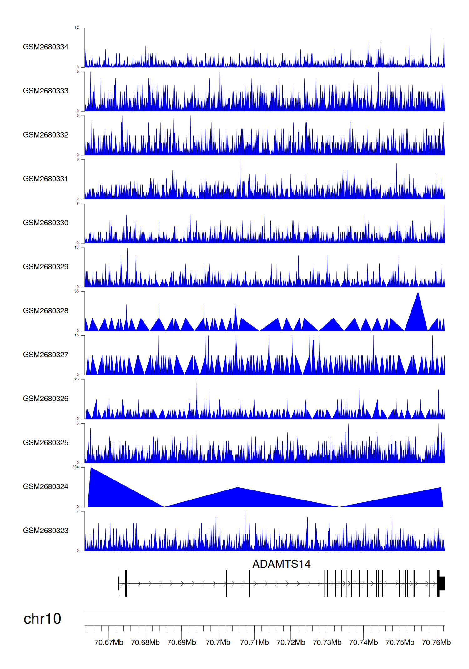 > Dataset: GSE68402 - ADAMTS14 peak across samples