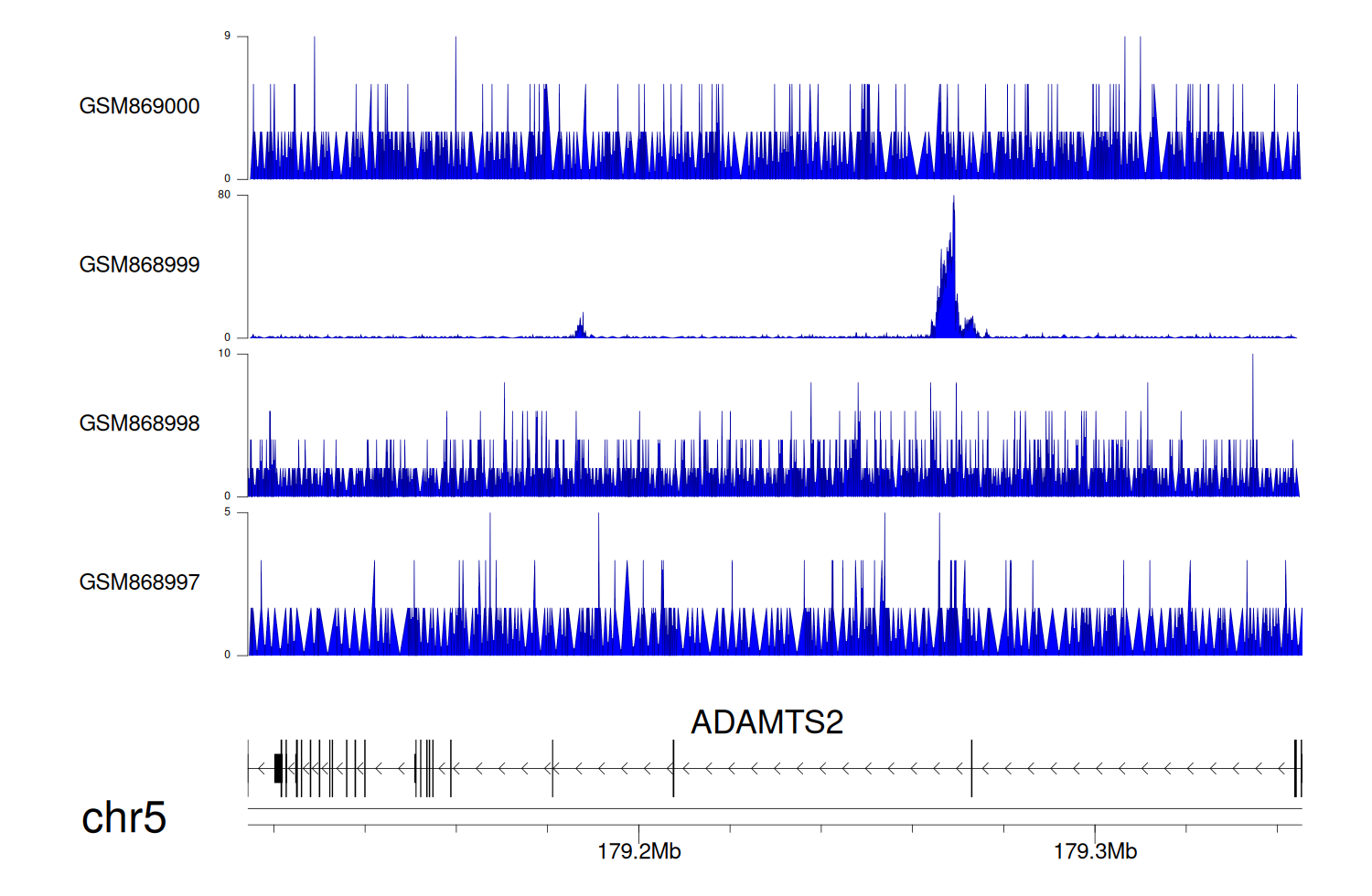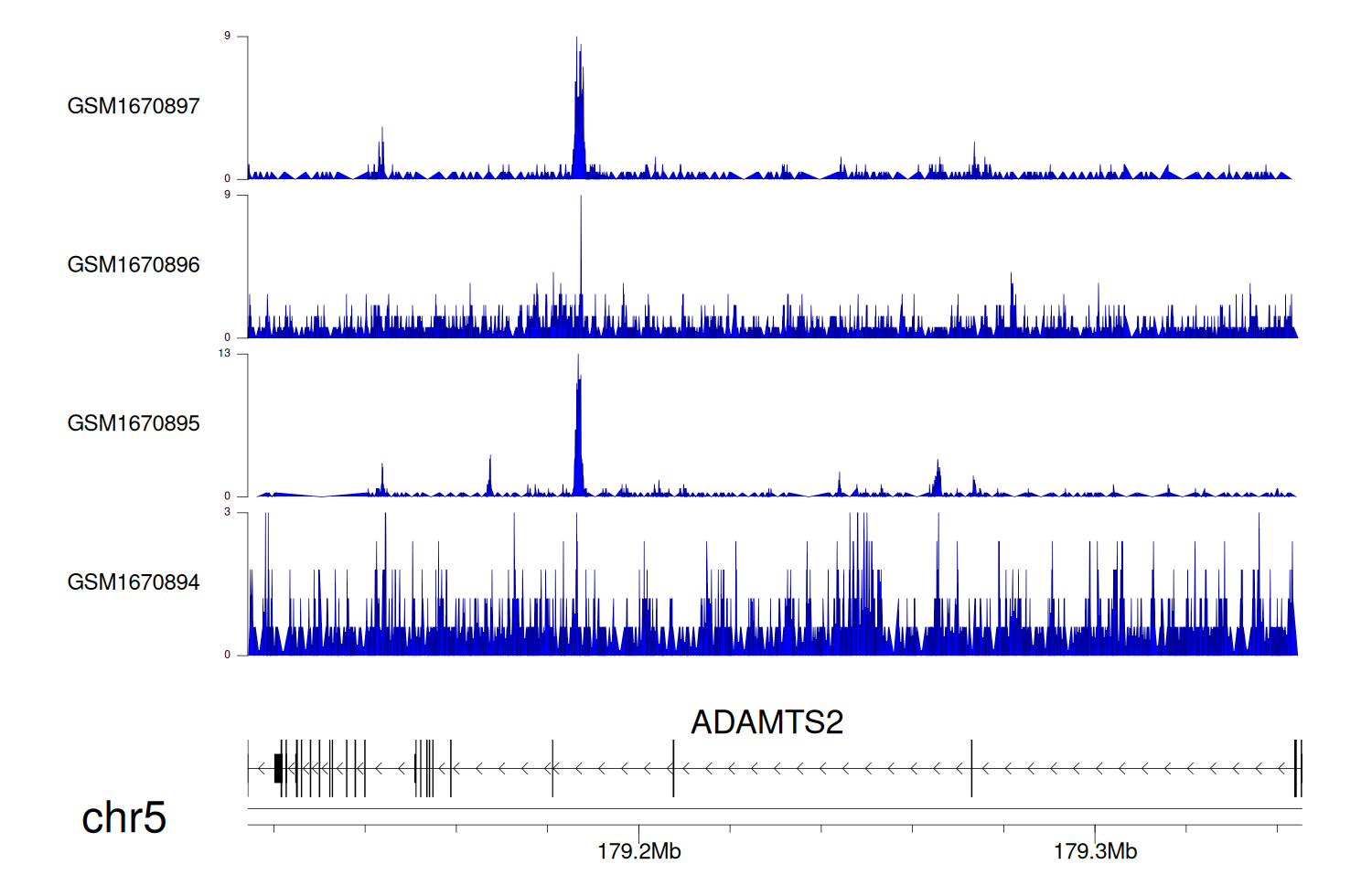 > Dataset: GSE68402 - ADAMTS2 peak across samples