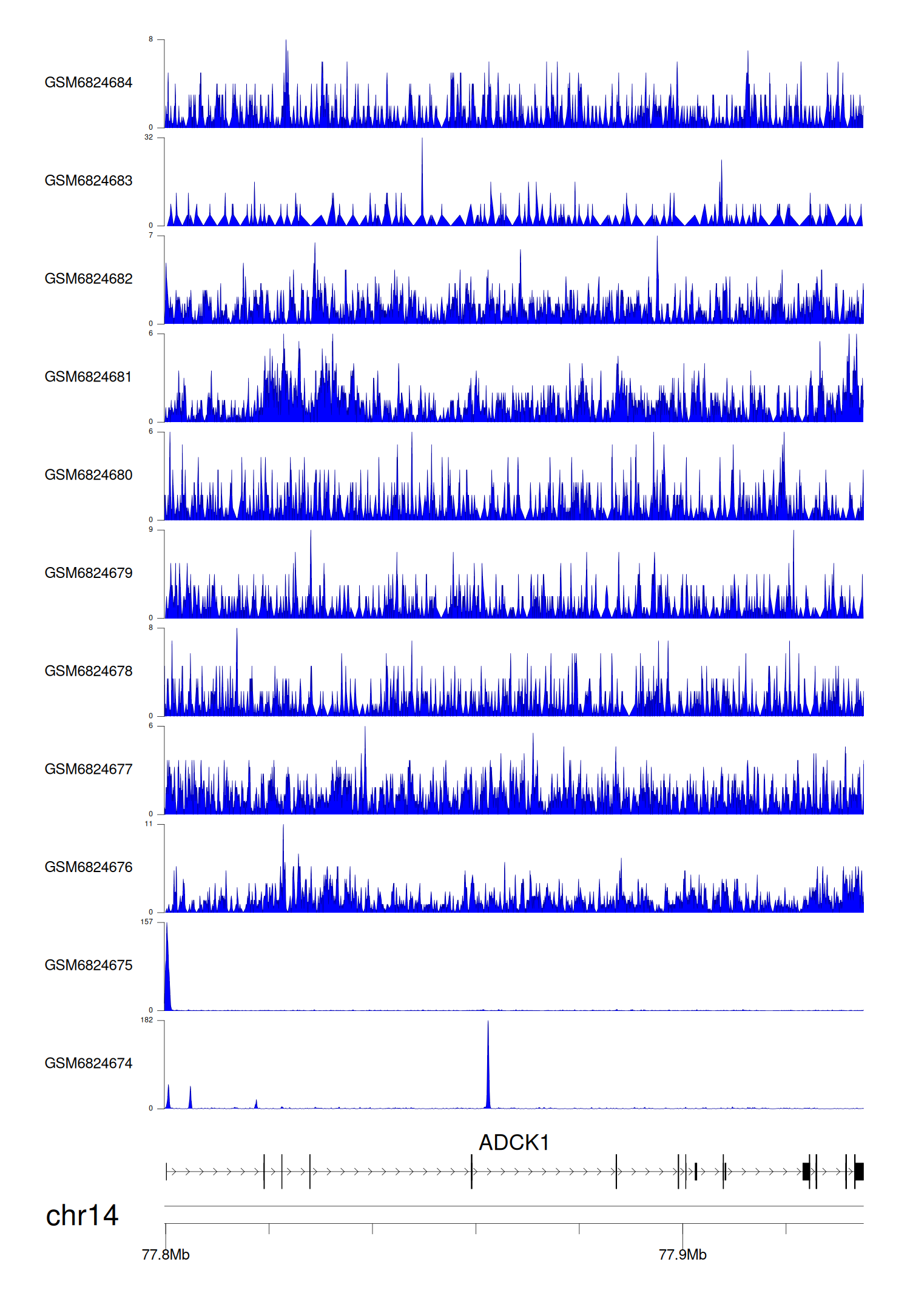 > Dataset: GSE144329 - ADCK1 peak across samples