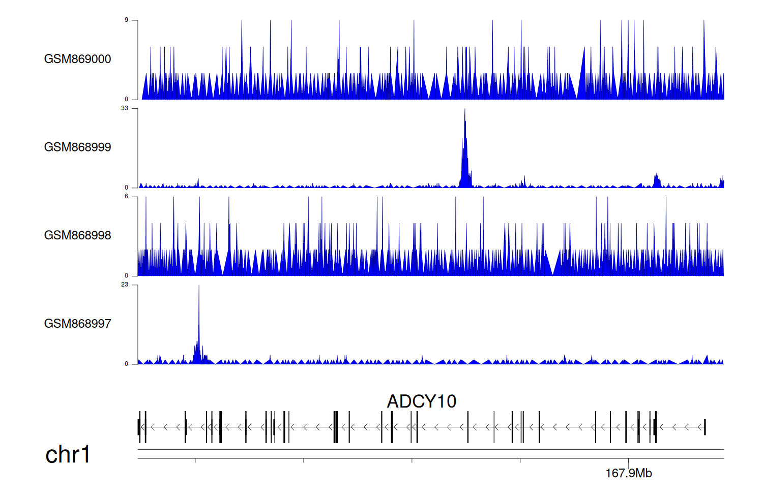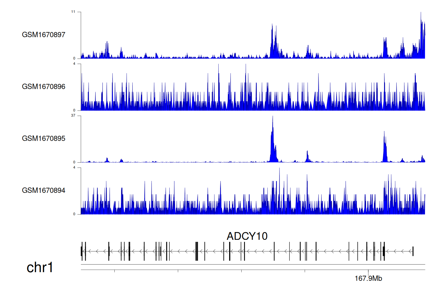 > Dataset: GSE68402 - ADCY10 peak across samples
