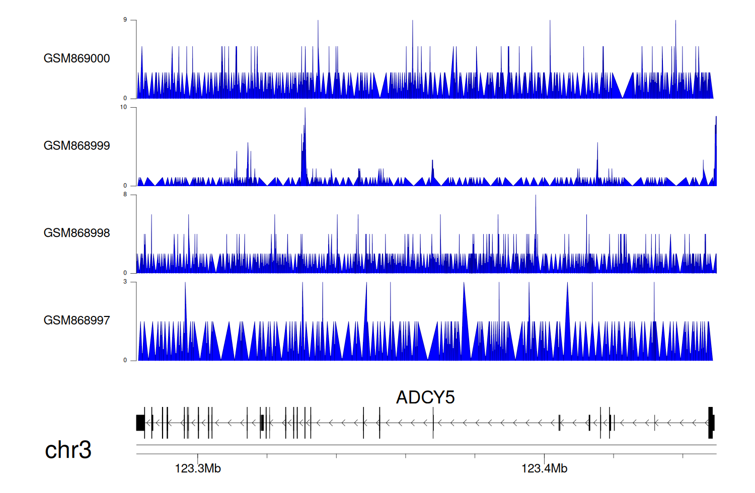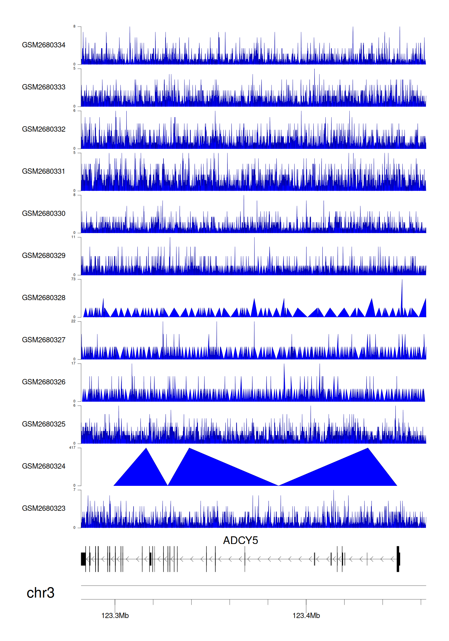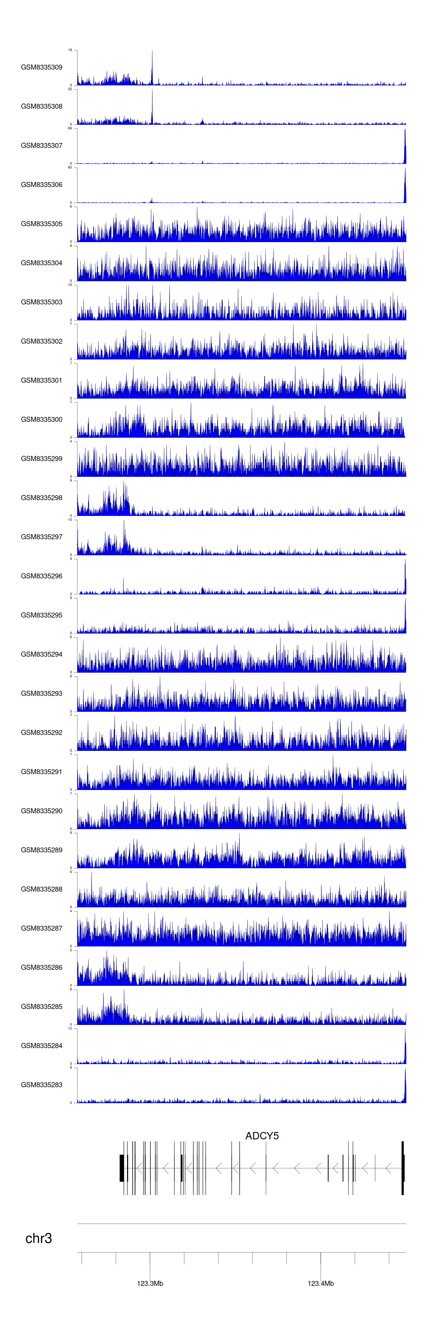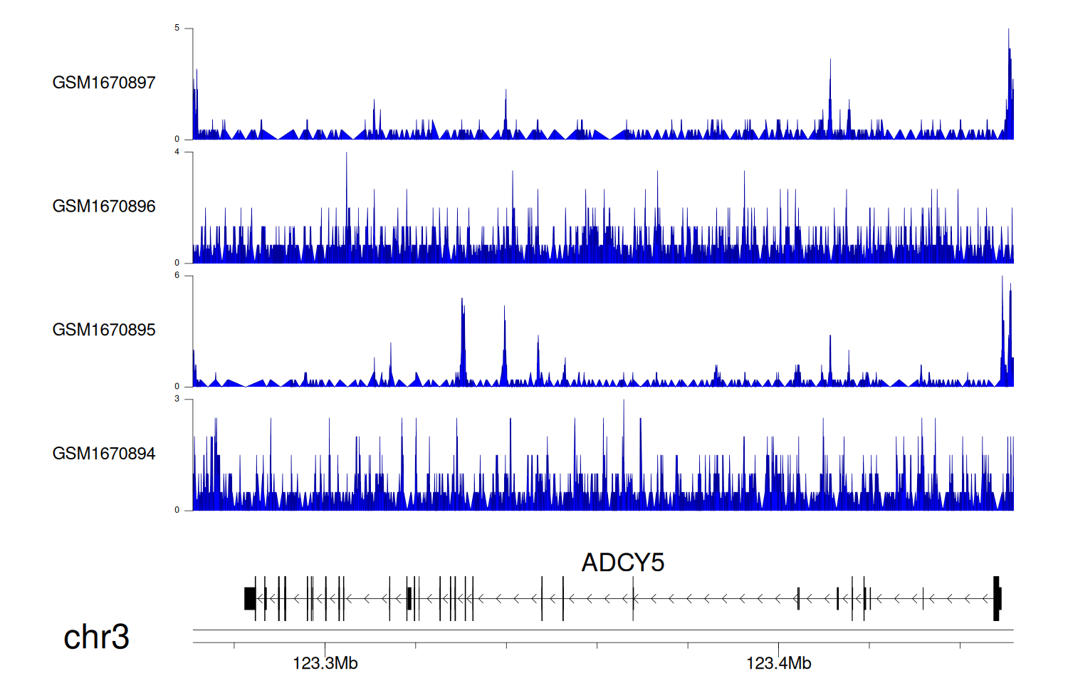 > Dataset: GSE68402 - ADCY5 peak across samples
