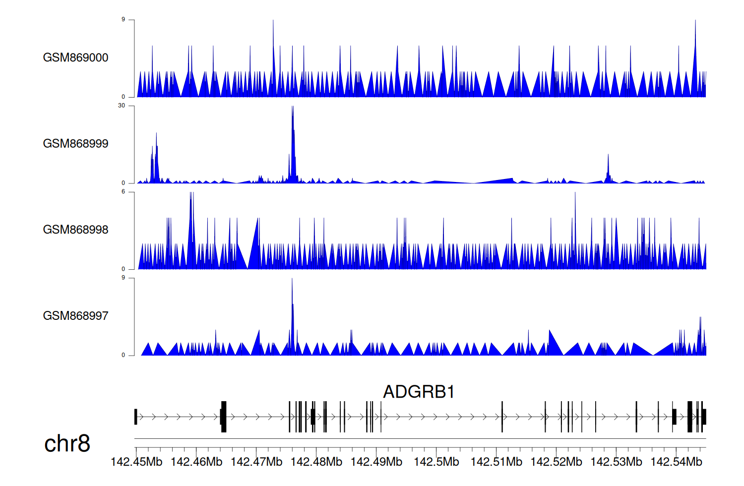 > Dataset: GSE64877 - ADGRB1 peak across samples