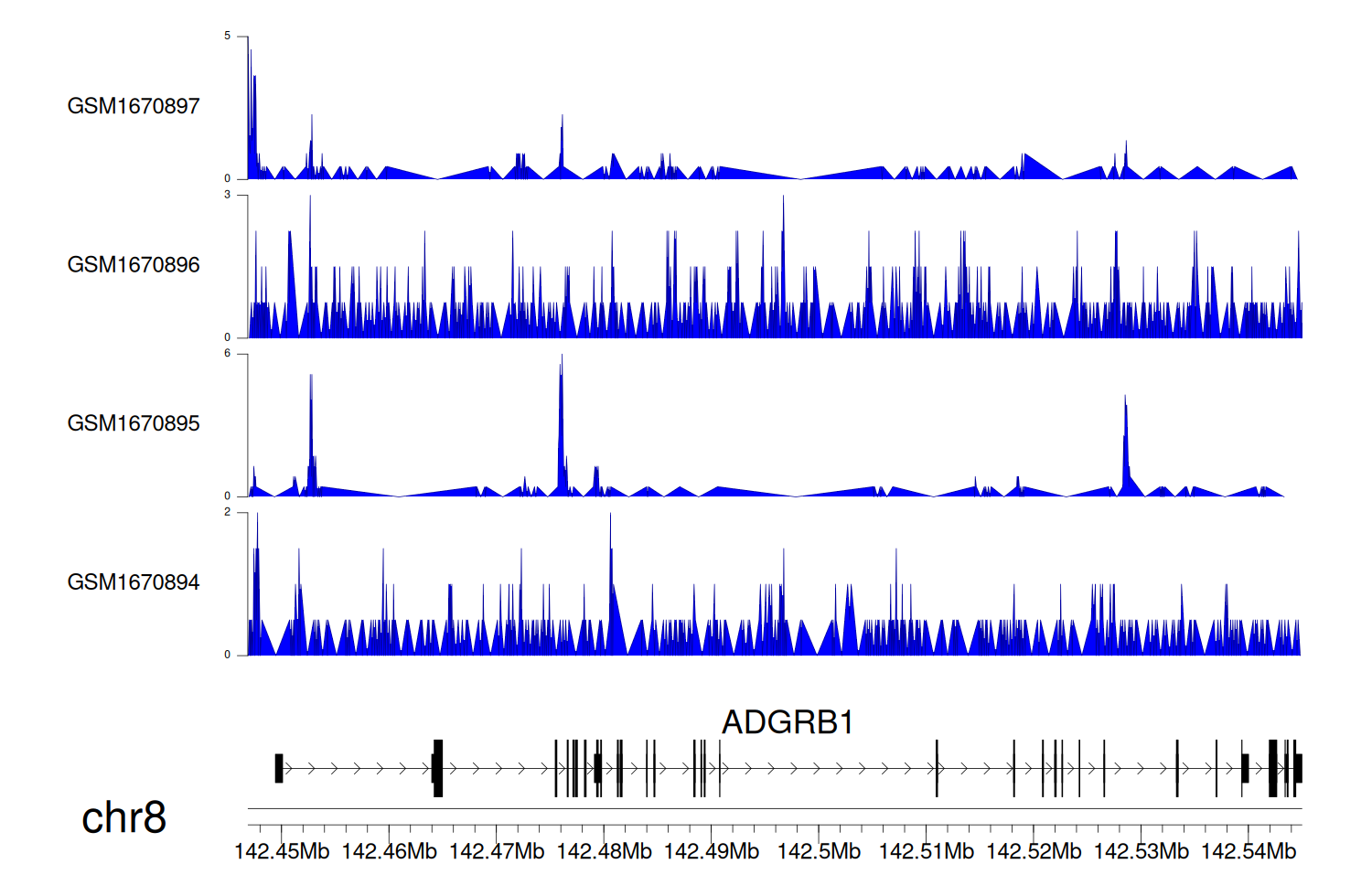 > Dataset: GSE68402 - ADGRB1 peak across samples