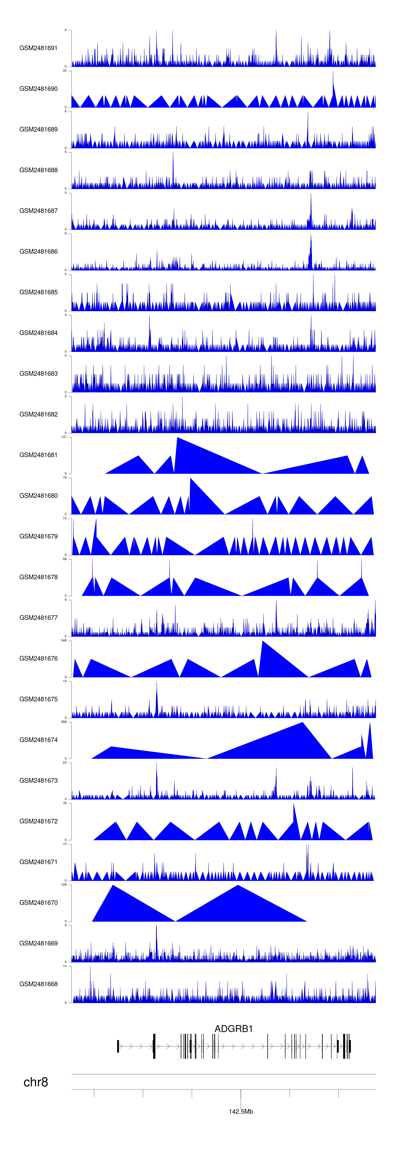 > Dataset: GSE94732 - ADGRB1 peak across samples