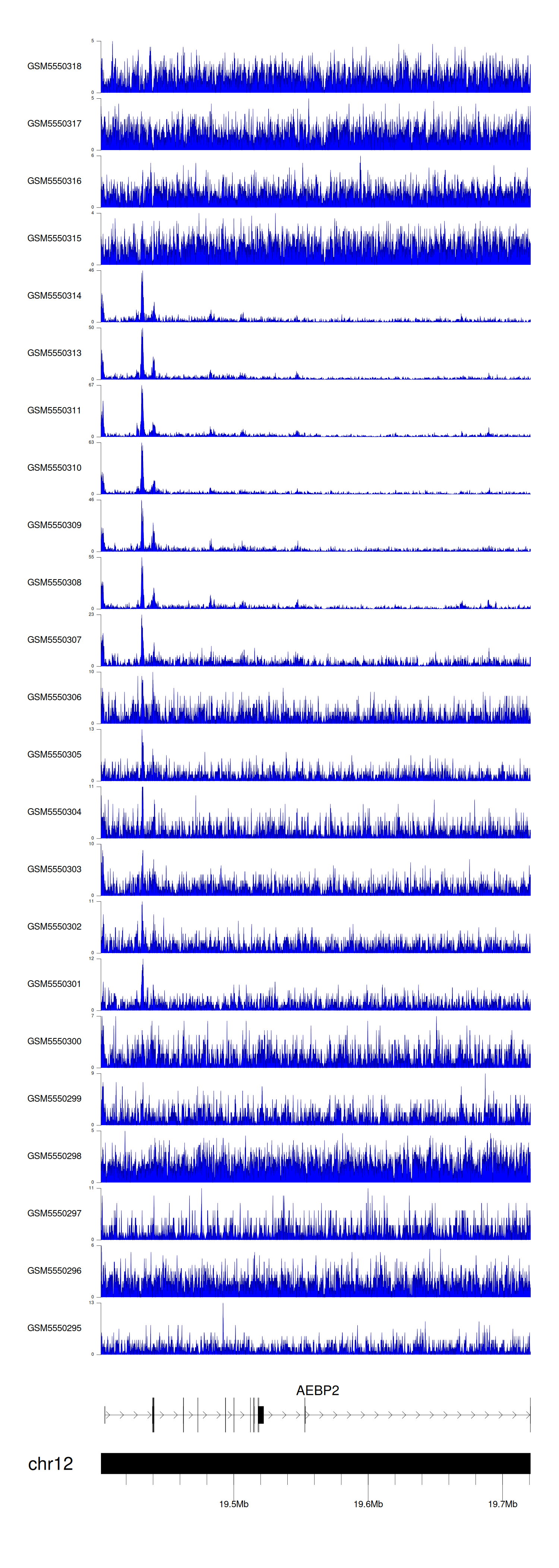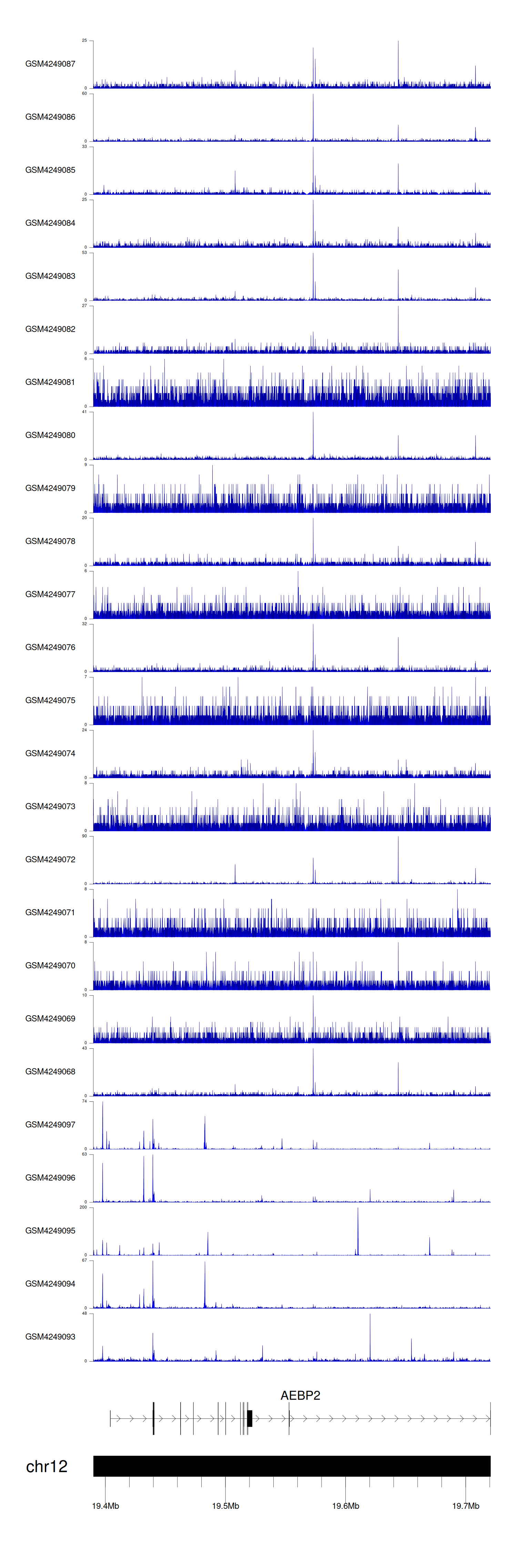> Dataset: GSE143026 - AEBP2 peak across samples