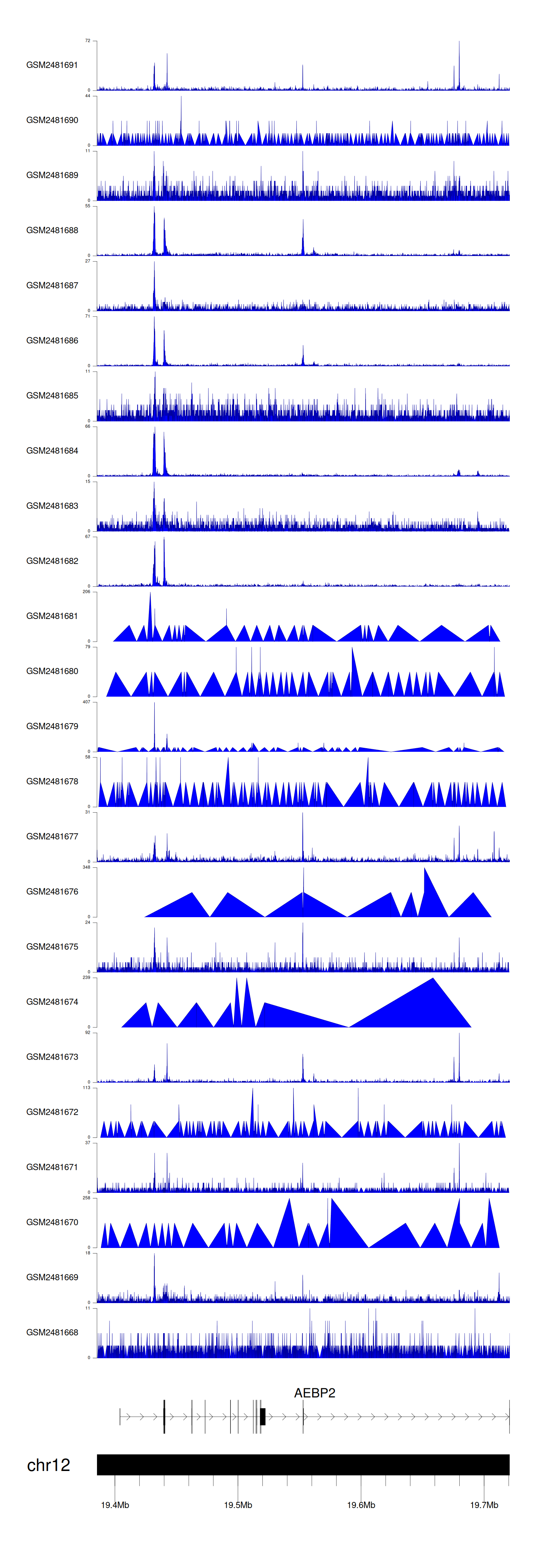 > Dataset: GSE94732 - AEBP2 peak across samples