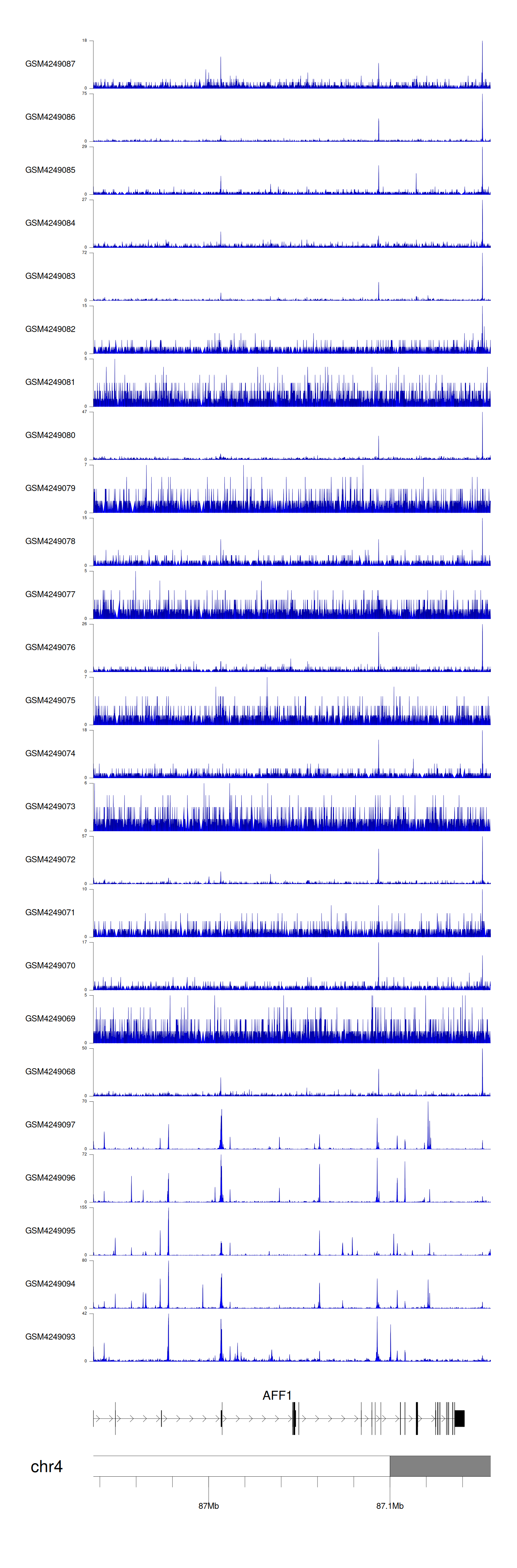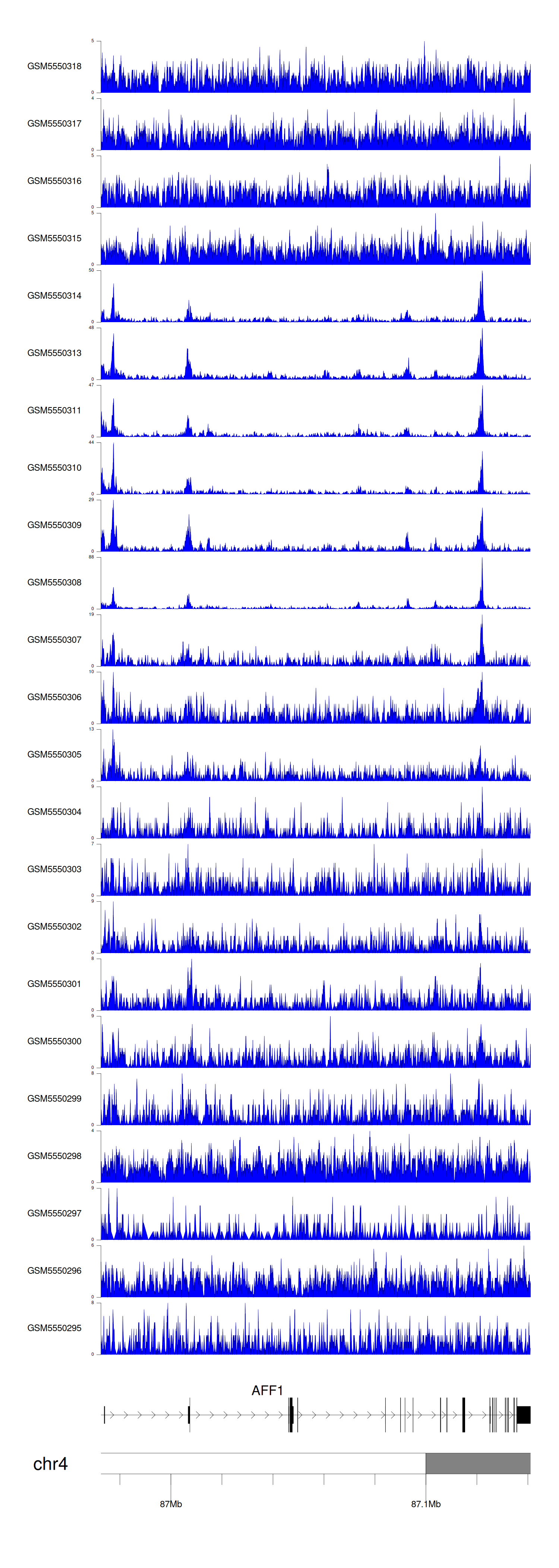 Summary This gene encodes a member of the AF4/ lymphoid nuclear protein related to the Fragile X E syndrome (FRAXE) family of proteins, which have been implicated in human childhood lymphoblastic leukemia, fragile chromosome X intellectual disability, and ataxia. It is the prevalent mixed-lineage leukemia fusion gene associated with spontaneous acute lymphoblastic leukemia. Members of this family have three conserved domains: an N-terminal homology domain, an AF4/ lymphoid nuclear protein domain, and a C-terminal homology domain. The protein functions as a regulator of RNA polymerase II-mediated transcription through elongation and chromatin remodeling functions. Through RNA interference screens, this gene has been shown to promote the expression of CD133, a plasma membrane glycoprotein required for leukemia cell survival. Alternative splicing results in multiple transcript variants. [provided by RefSeq, Jul 2017]