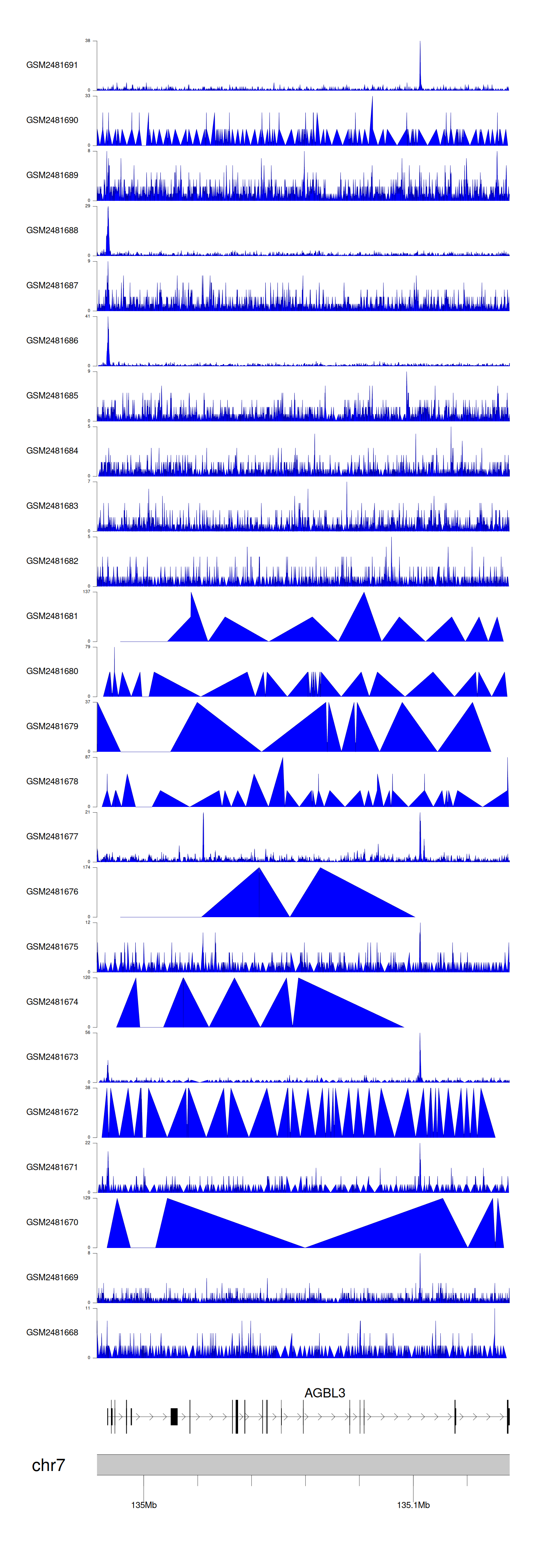 > Dataset: GSE94732 - AGBL3 peak across samples