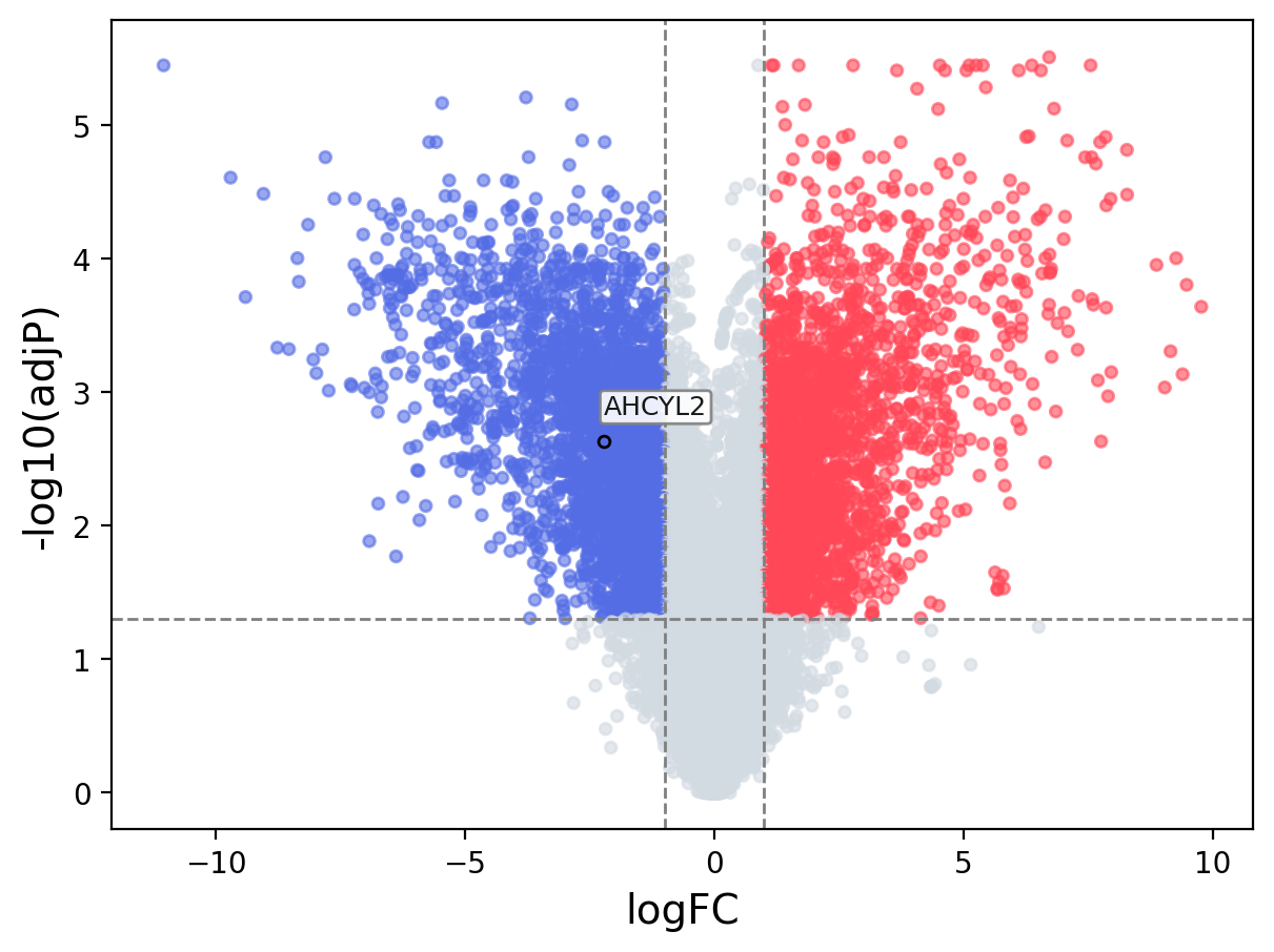 When the query gene is differentially changed in the dataset, a volcano/bar plot will be displayed.