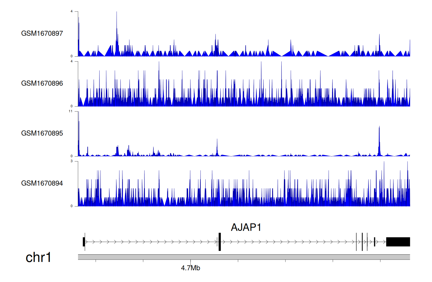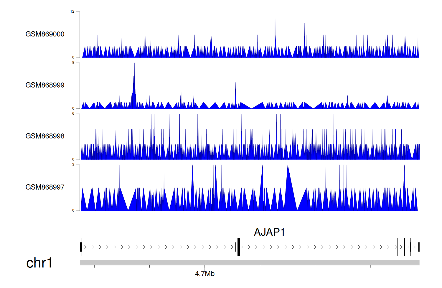 > Dataset: GSE68402 - AJAP1 peak across samples
