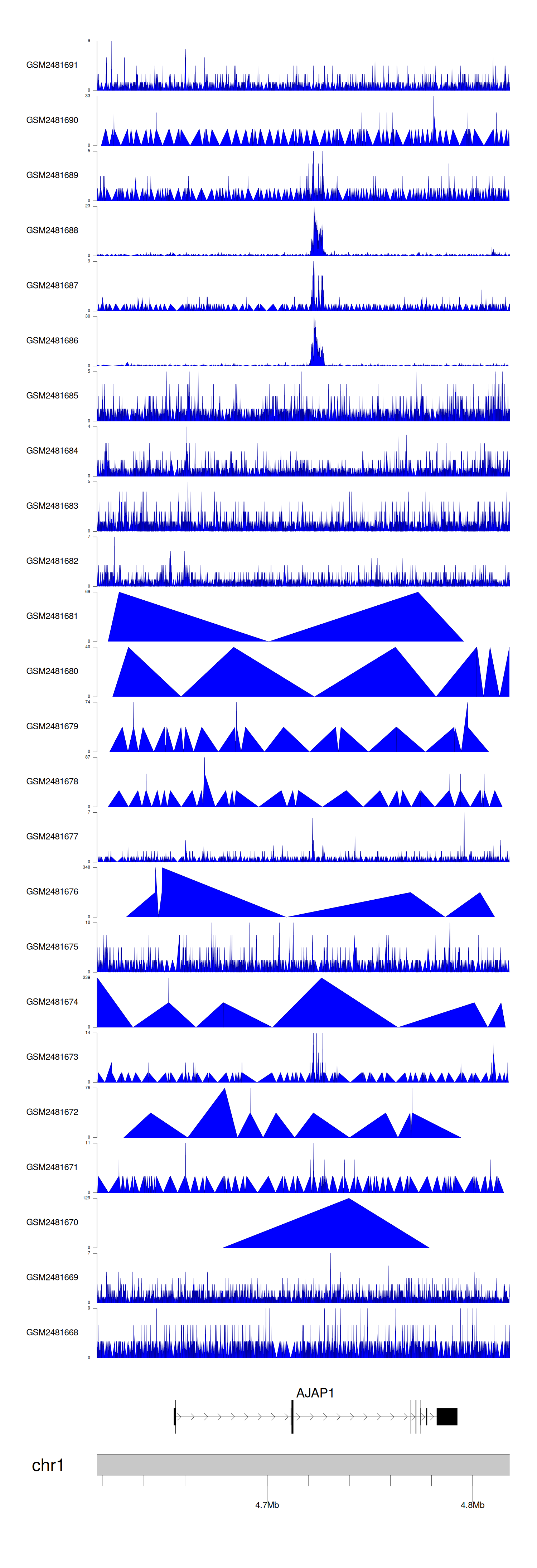 > Dataset: GSE94732 - AJAP1 peak across samples