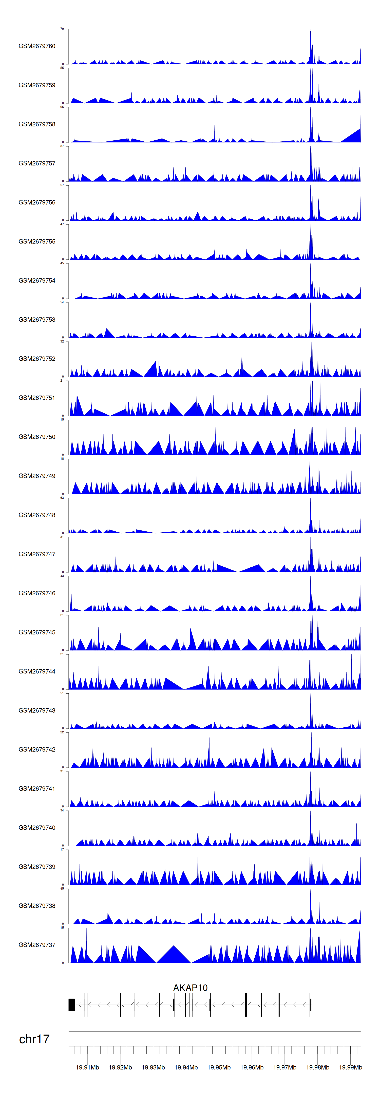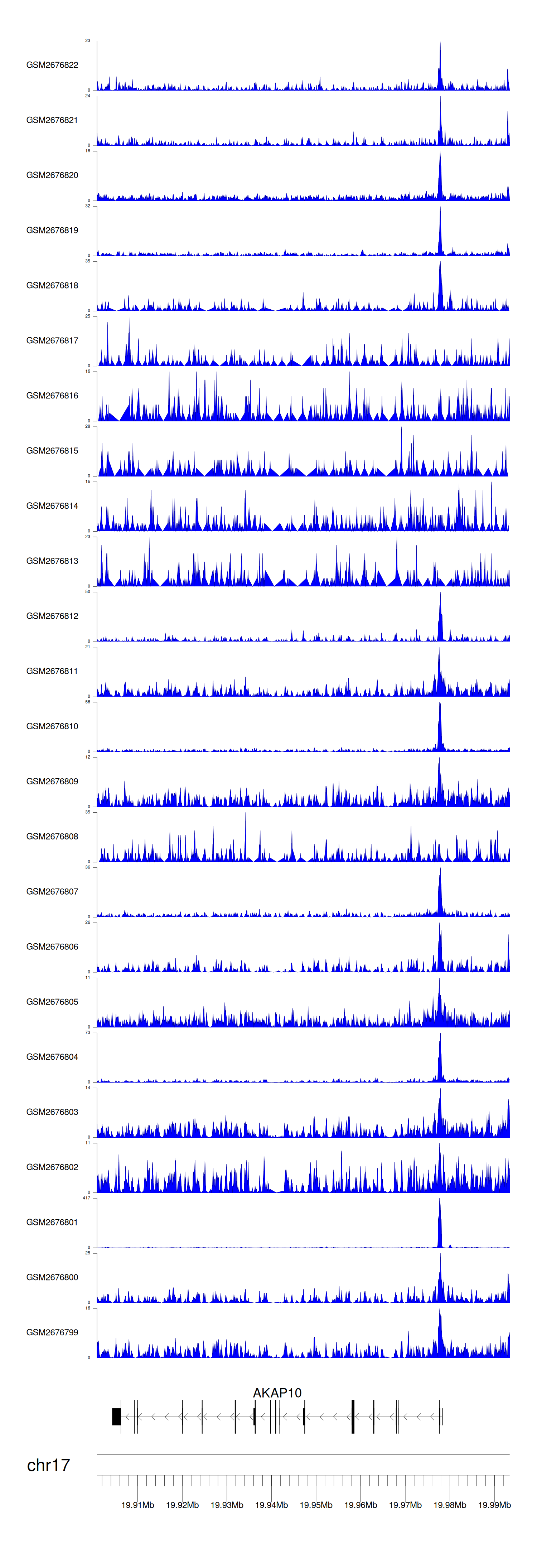 > Dataset: GSE100376 - AKAP10 peak across samples