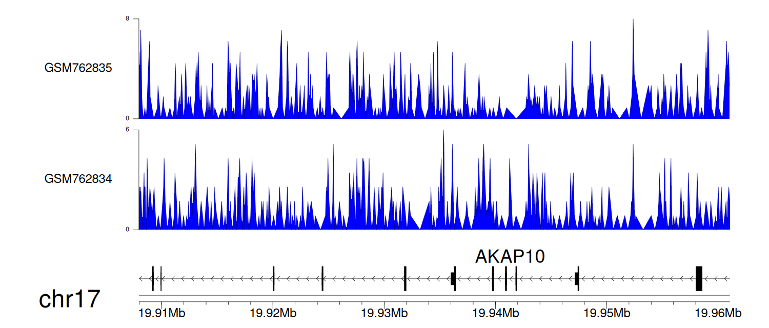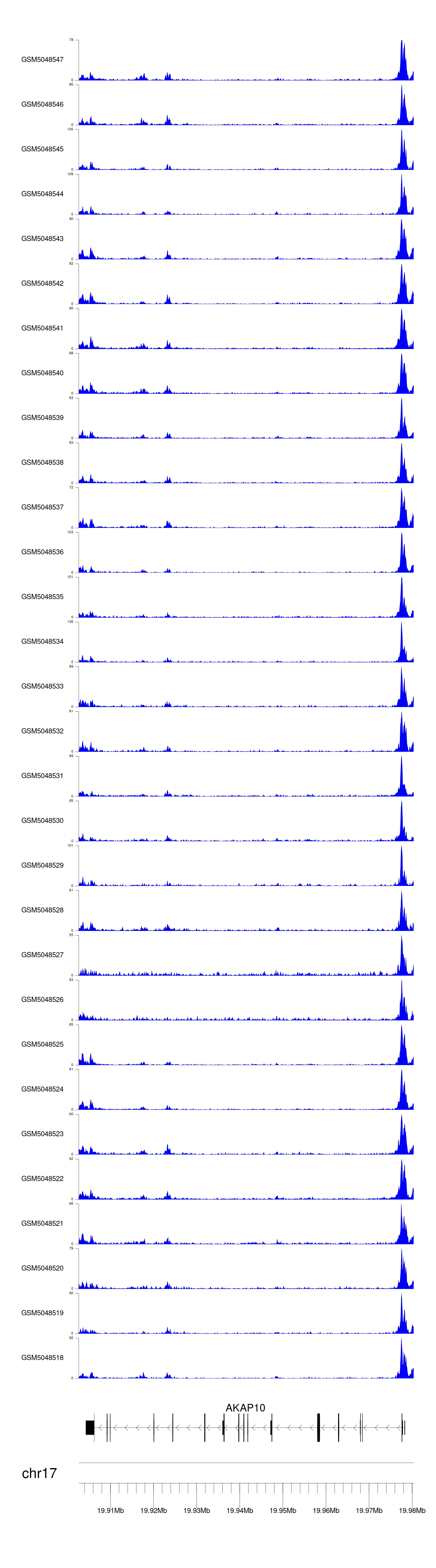 > Dataset: GSE30738 - AKAP10 peak across samples