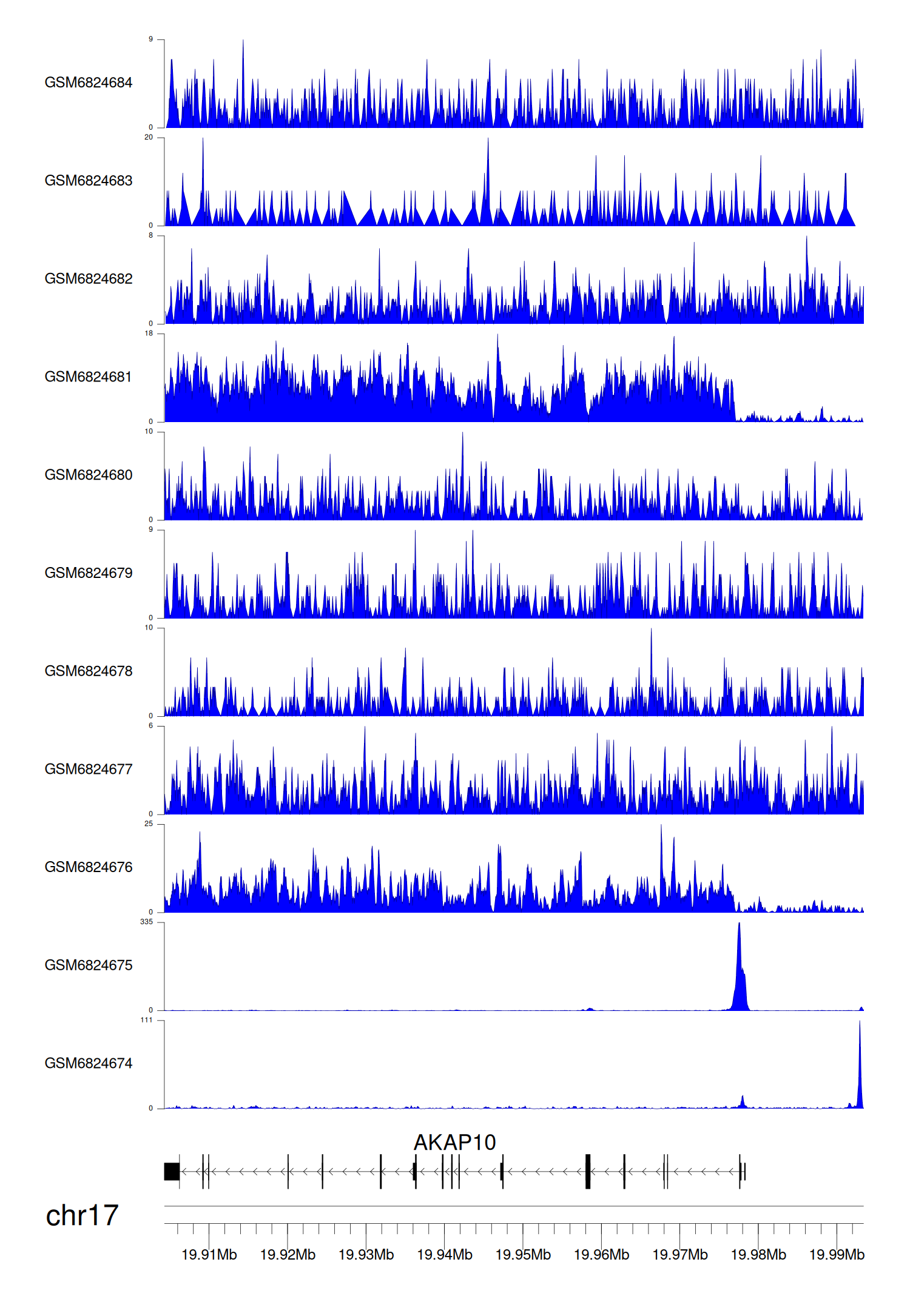 > Dataset: GSE144329 - AKAP10 peak across samples