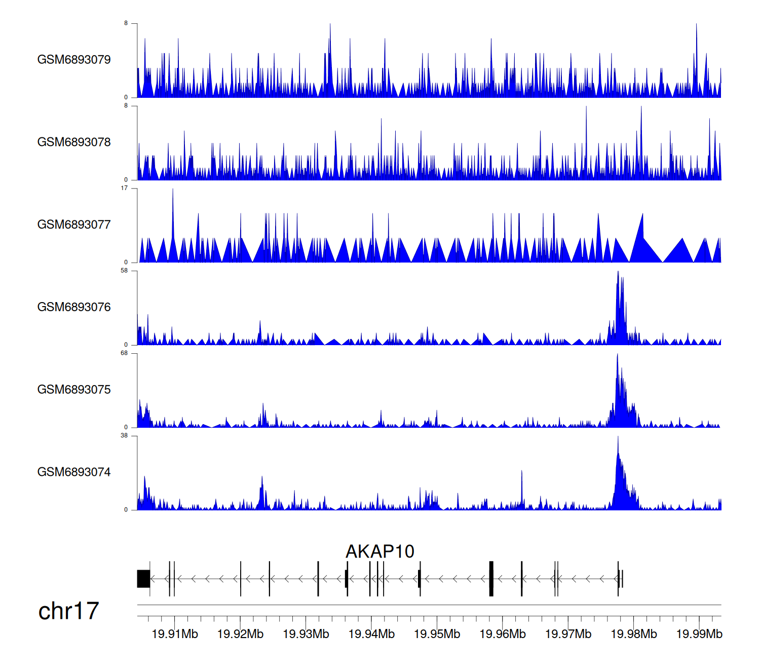 > Dataset: GSE211651 - AKAP10 peak across samples