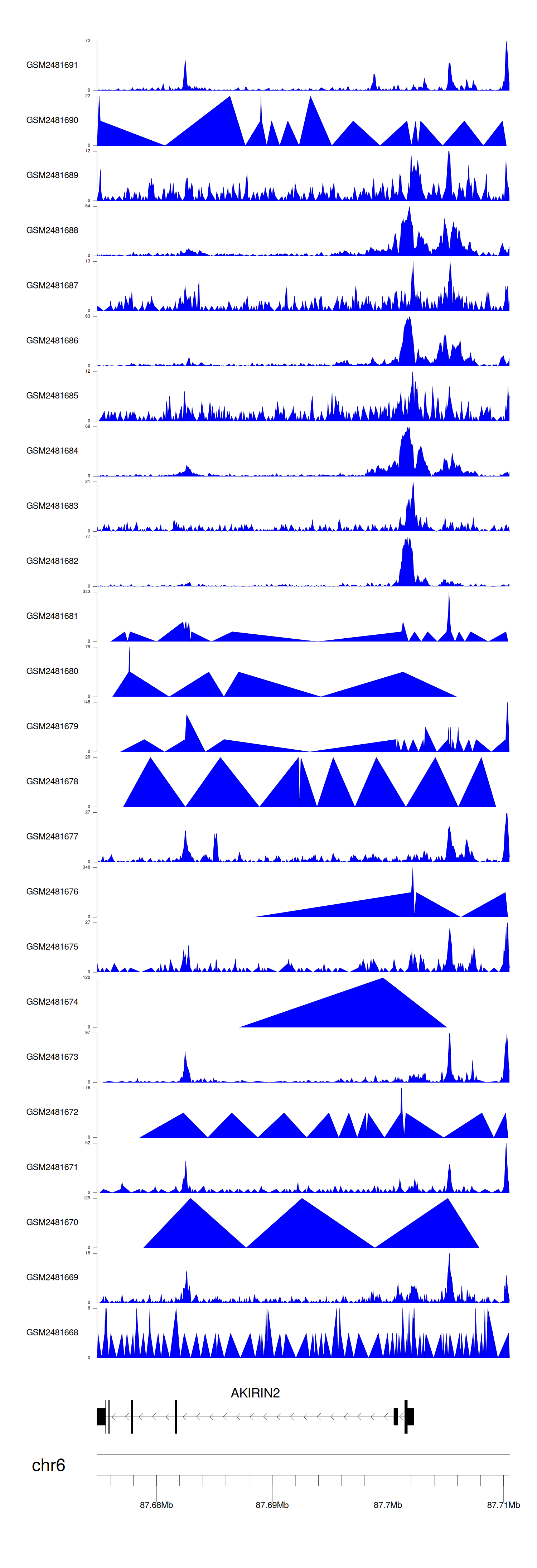 > Dataset: GSE94732 - AKIRIN2 peak across samples