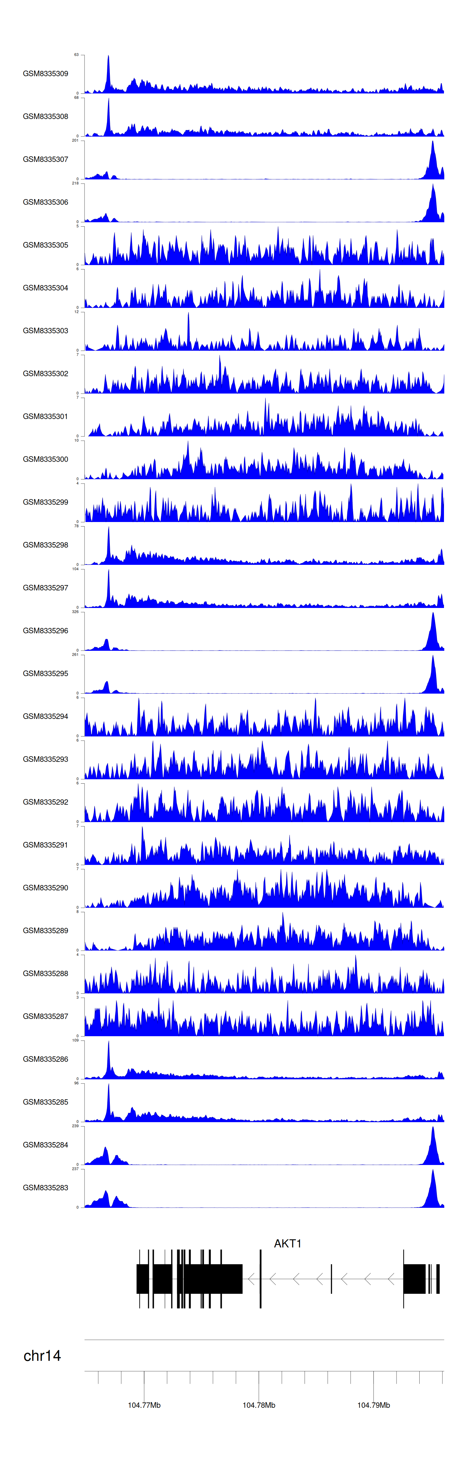> Dataset: GSE270130 - AKT1 peak across samples