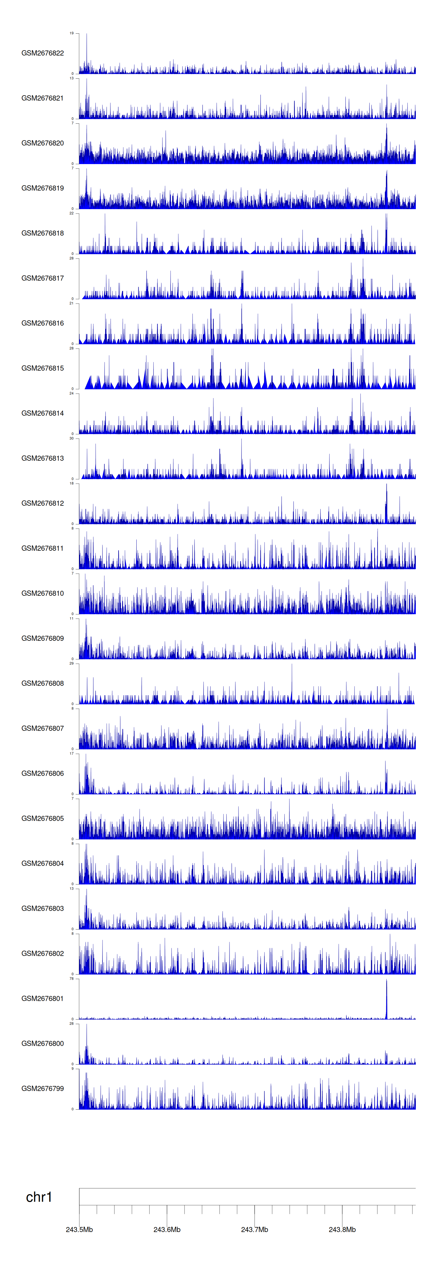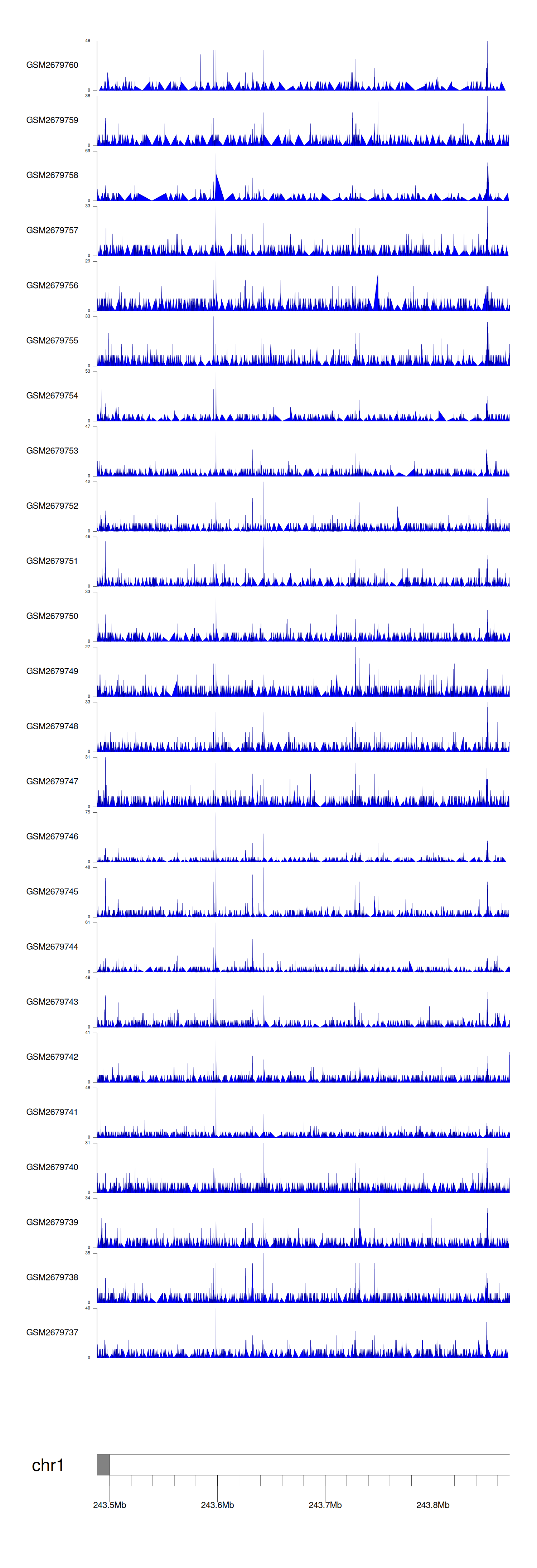 > Dataset: GSE30738 - AKT3 peak across samples