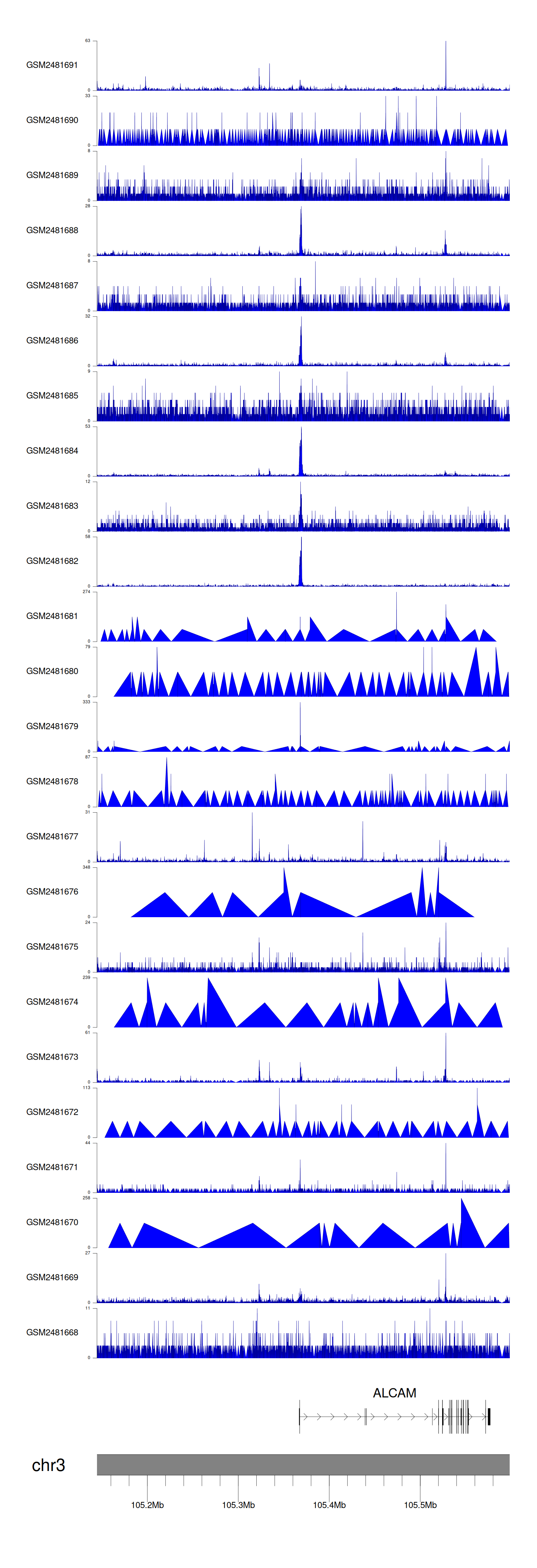 This gene encodes activated leukocyte cell adhesion molecule (ALCAM), also known as CD166 (cluster of differentiation 166), which is a member of a subfamily of immunoglobulin receptors with five immunoglobulin-like domains (VVC2C2C2) in the extracellular domain. This protein binds to T-cell differentiation antigene CD6, and is implicated in the processes of cell adhesion and migration. Multiple alternatively spliced transcript variants encoding different isoforms have been found. [provided by RefSeq, Aug 2011] |