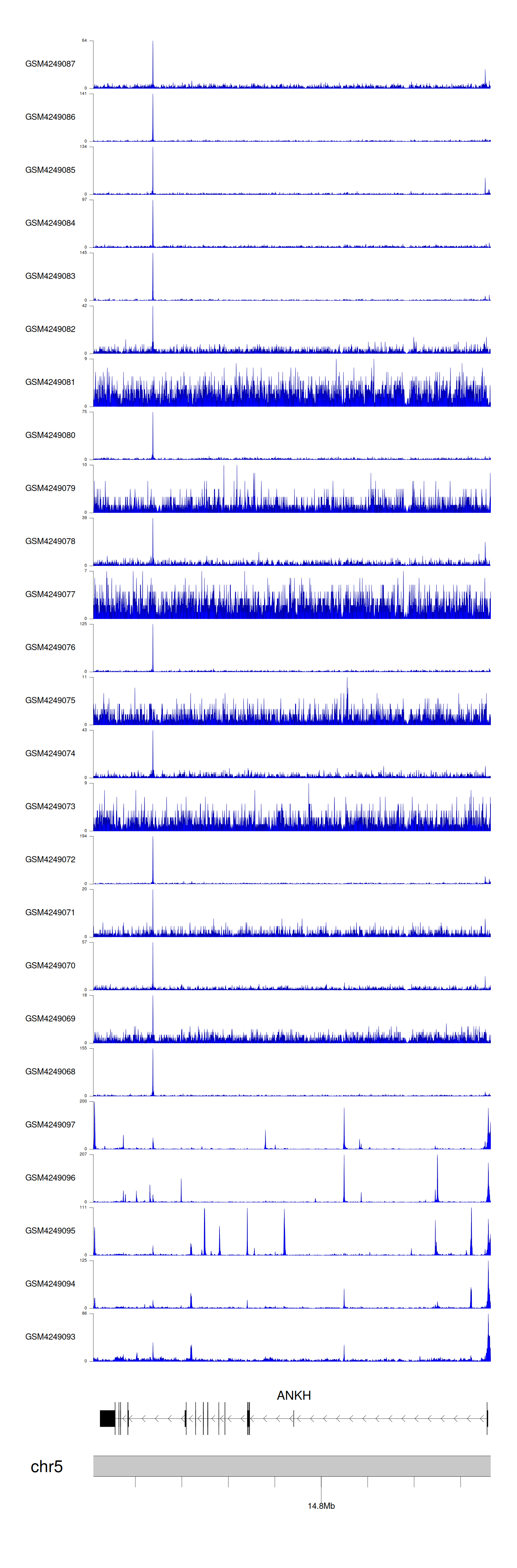> Dataset: GSE143026 - ANKH peak across samples