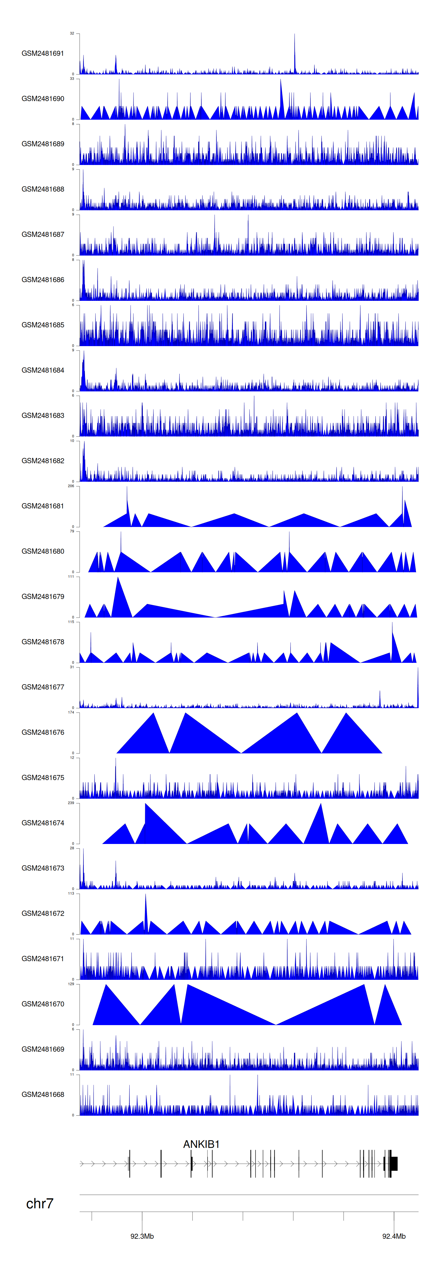 > Dataset: GSE94732 - ANKIB1 peak across samples