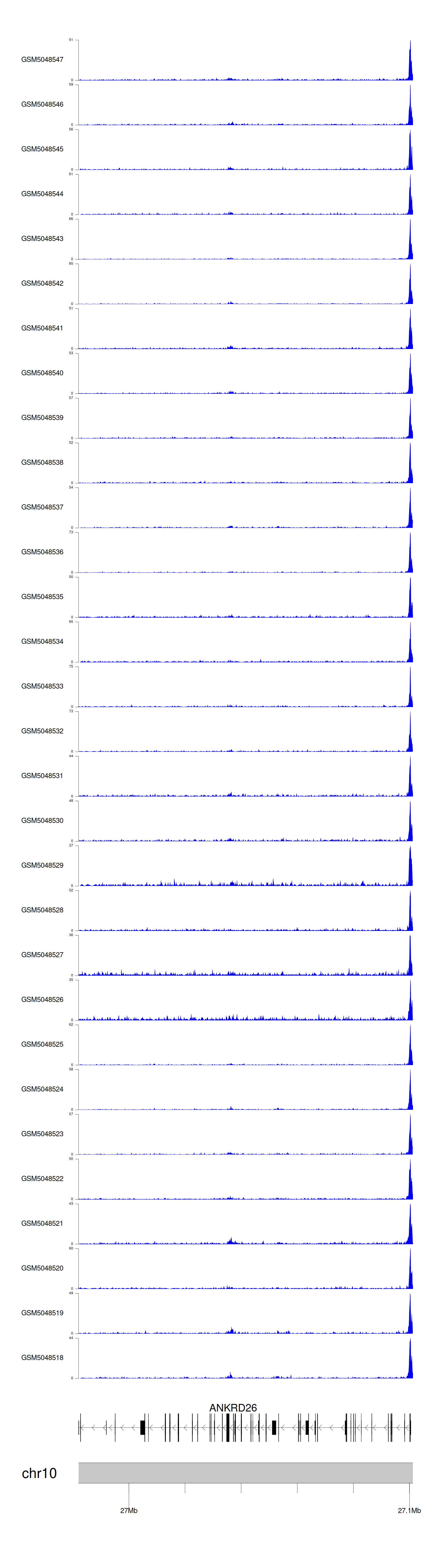 > Dataset: GSE100376 - ANKRD26 peak across samples