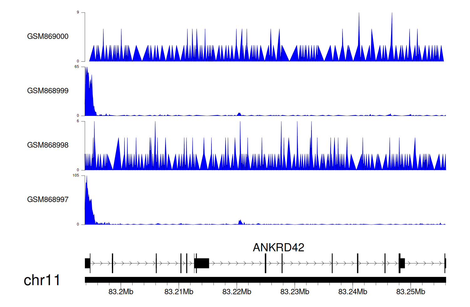 > Dataset: GSE68402 - ANKRD42 peak across samples