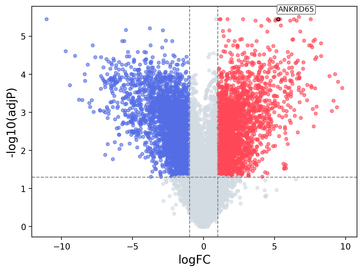 When the query gene is differentially changed in the dataset, a volcano/bar plot will be displayed.
