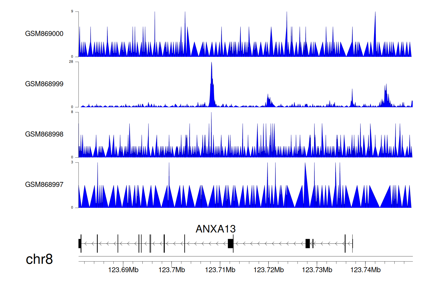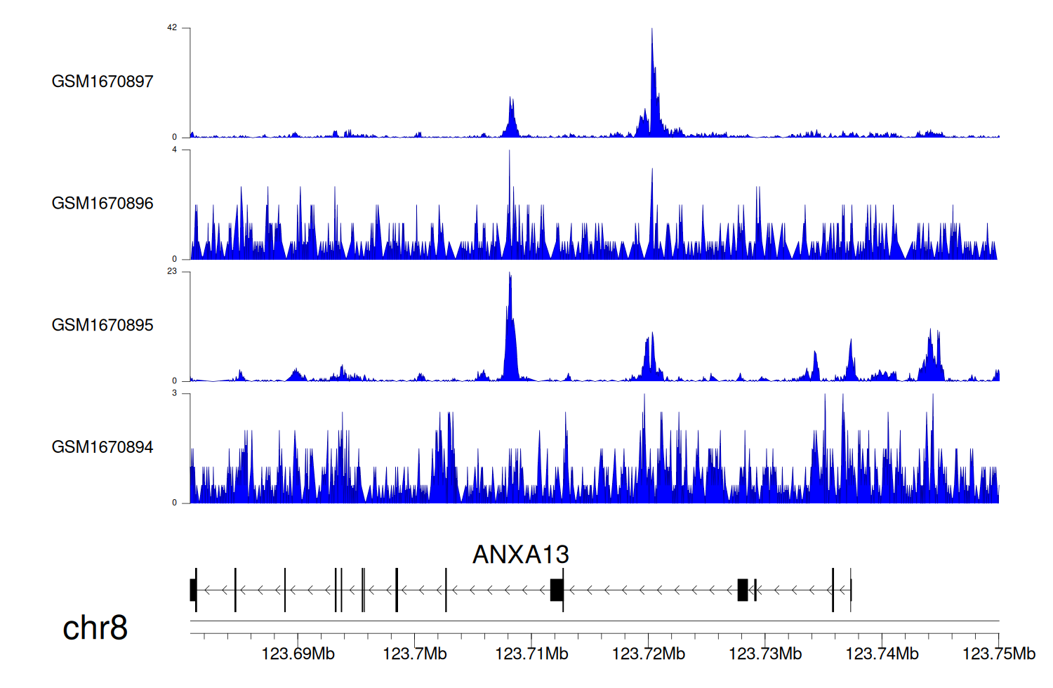 > Dataset: GSE68402 - ANXA13 peak across samples