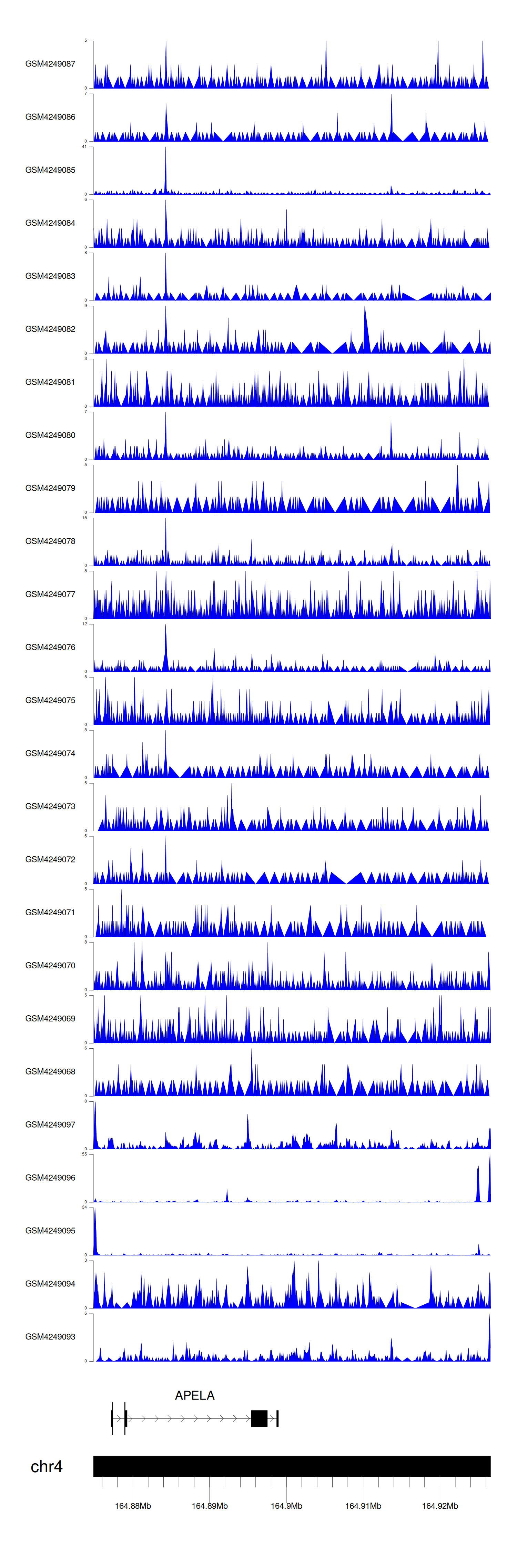 Summary This gene encodes a peptide hormone that binds to the Apelin receptor. The encoded protein is required for heart development in zebrafish and has been shown to maintain self-renewal of human embryonic stem cells through activation of the PI3K/AKT pathway. Experiments in human and mouse cell lines point to additional roles for the encoded protein in angiogenesis and regulation of vascular tone. [provided by RefSeq, Jul 2016]