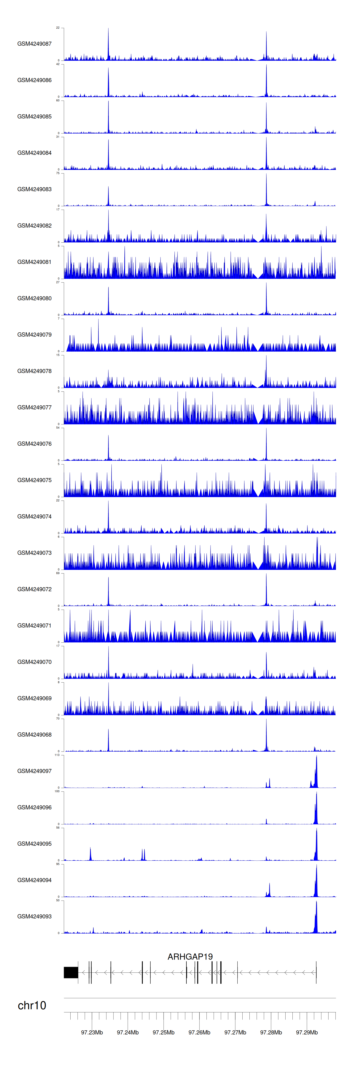 > Dataset: GSE143026 - ARHGAP19 peak across samples
