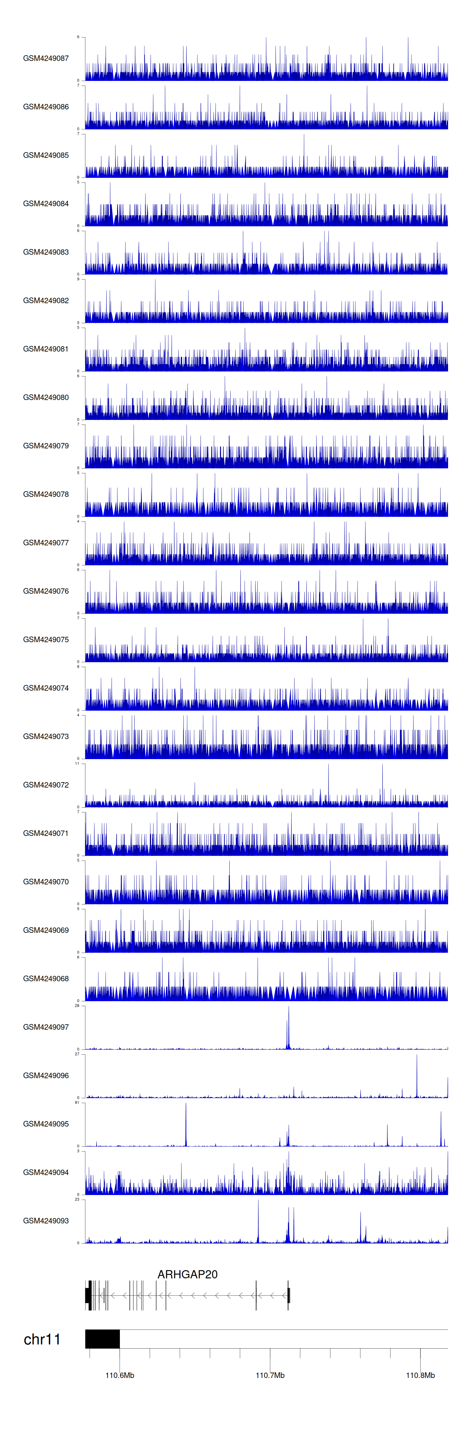 > Dataset: GSE143026 - ARHGAP20 peak across samples