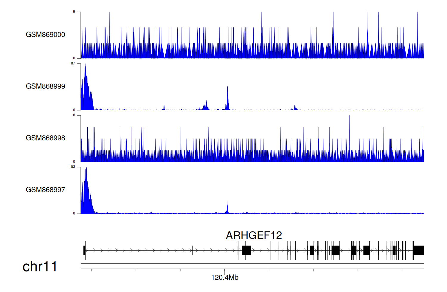 > Dataset: GSE68402 - ARHGEF12 peak across samples