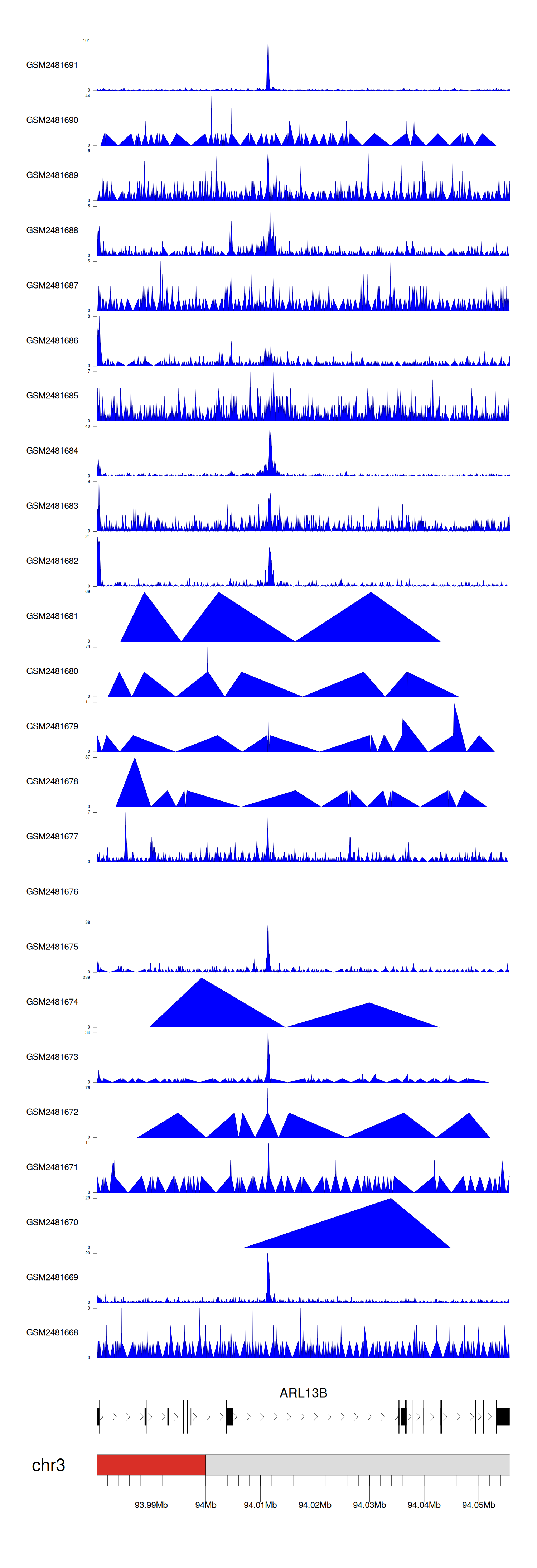 This gene encodes a member of the ADP-ribosylation factor-like family. The encoded protein is a small GTPase that contains both N-terminal and C-terminal guanine nucleotide-binding motifs. This protein is localized in the cilia and plays a role in cilia formation and in maintenance of cilia. Mutations in this gene are the cause of Joubert syndrome 8. Alternate splicing results in multiple transcript variants. [provided by RefSeq, Mar 2010] |