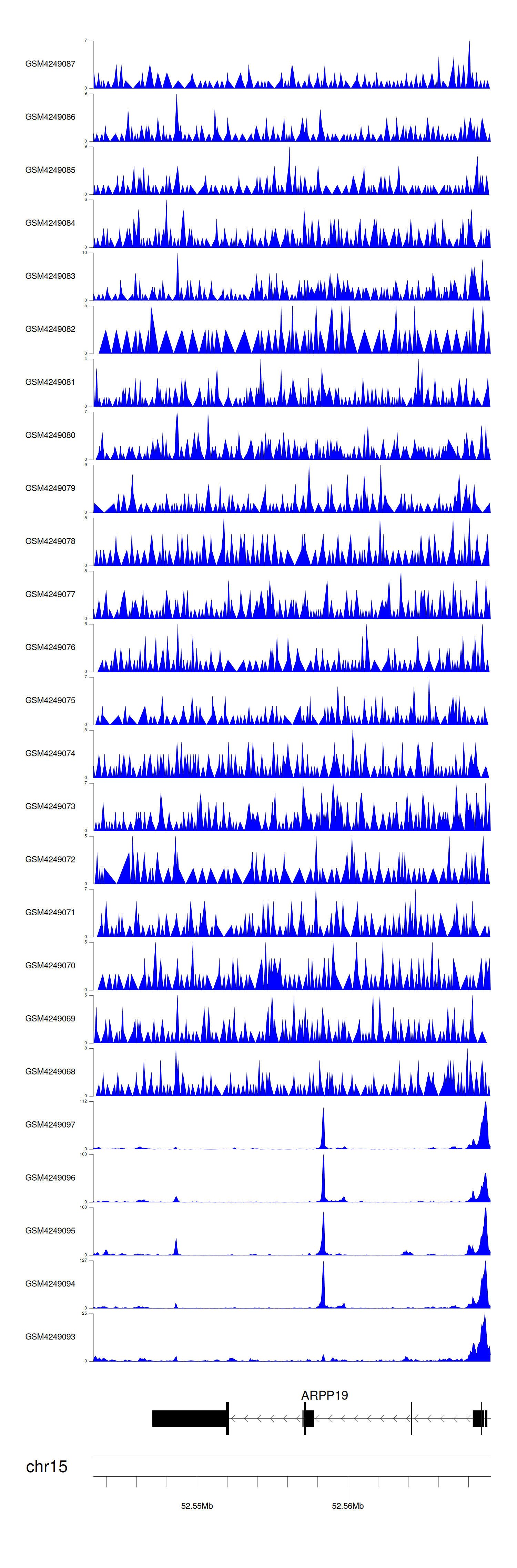 > Dataset: GSE143026 - ARPP19 peak across samples