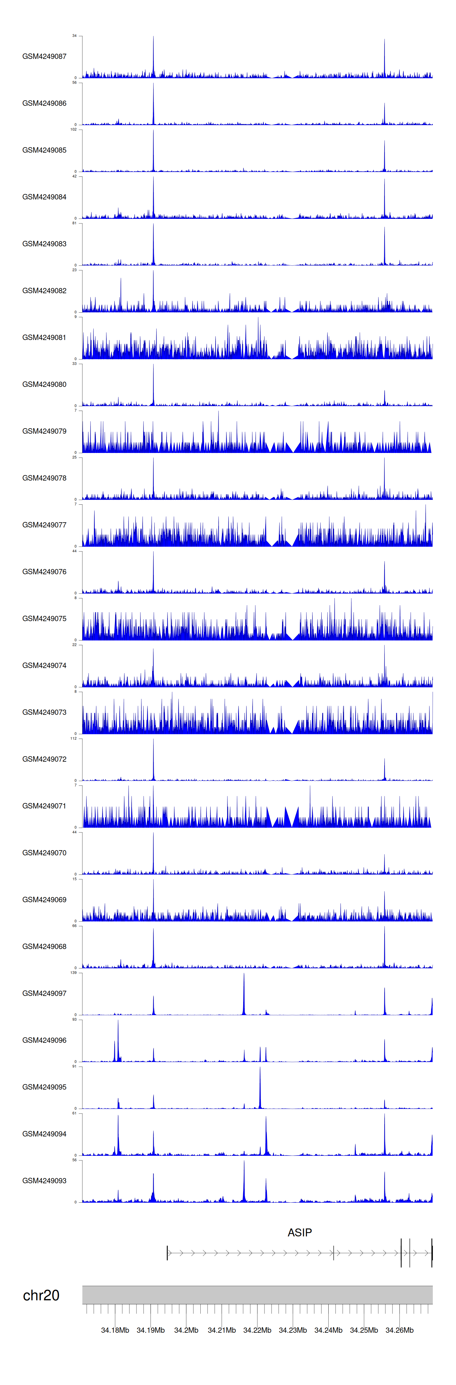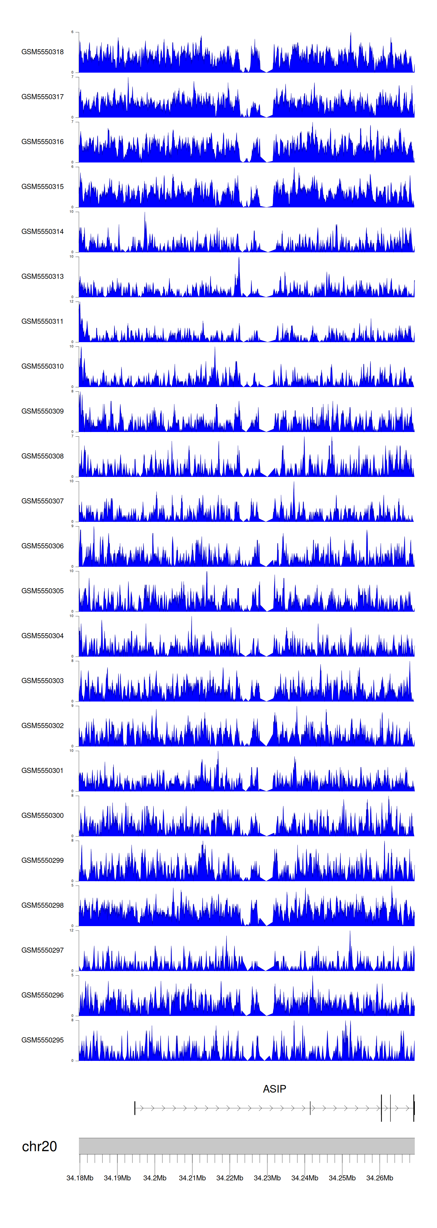 Summary In mice, the agouti gene encodes a paracrine signaling molecule that causes hair follicle melanocytes to synthesize pheomelanin, a yellow pigment, instead of the black or brown pigment, eumelanin. Pleiotropic effects of constitutive expression of the mouse gene include adult-onset obesity, increased tumor susceptibility, and premature infertility. This gene is highly similar to the mouse gene and encodes a secreted protein that may (1) affect the quality of hair pigmentation, (2) act as a pharmacological antagonist of alpha-melanocyte-stimulating hormone, (3) play a role in neuroendocrine aspects of melanocortin action, and (4) have a functional role in regulating lipid metabolism in adipocytes. [provided by RefSeq, Jul 2008]