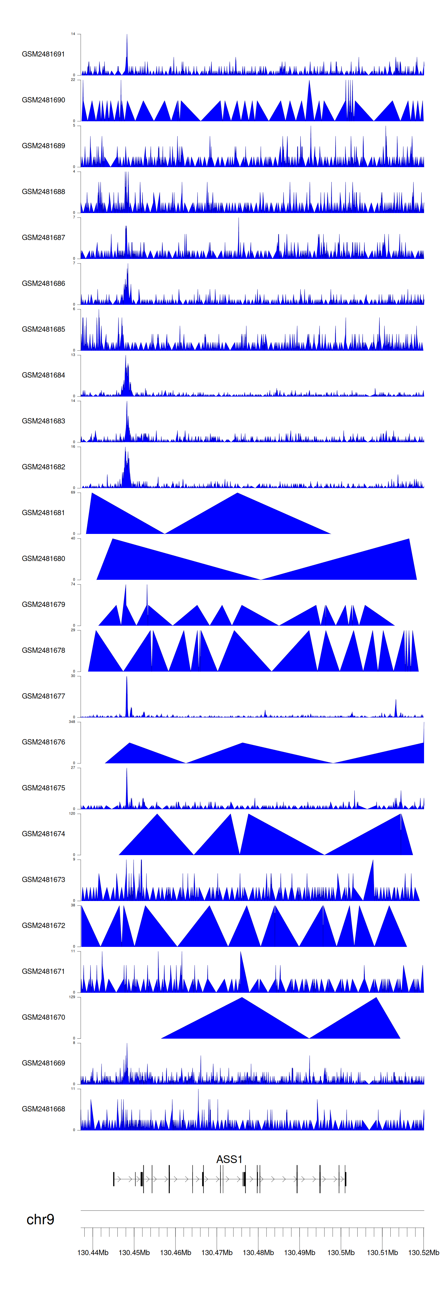 > Dataset: GSE94732 - ASS1 peak across samples