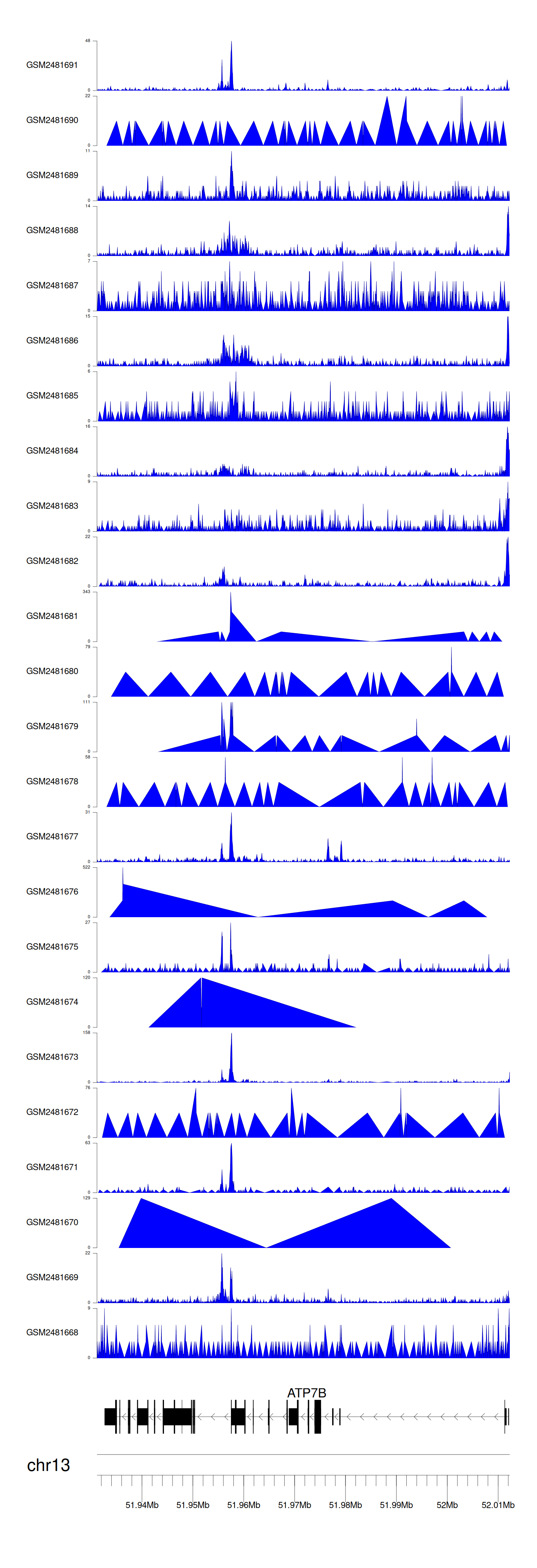 > Dataset: GSE94732 - ATP7B peak across samples