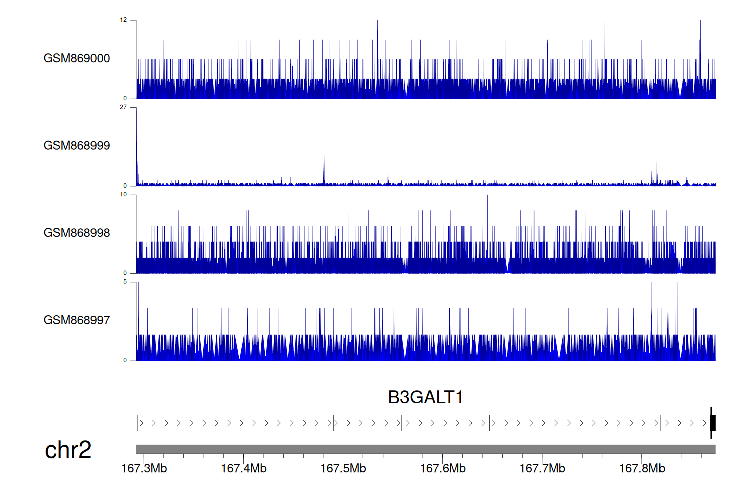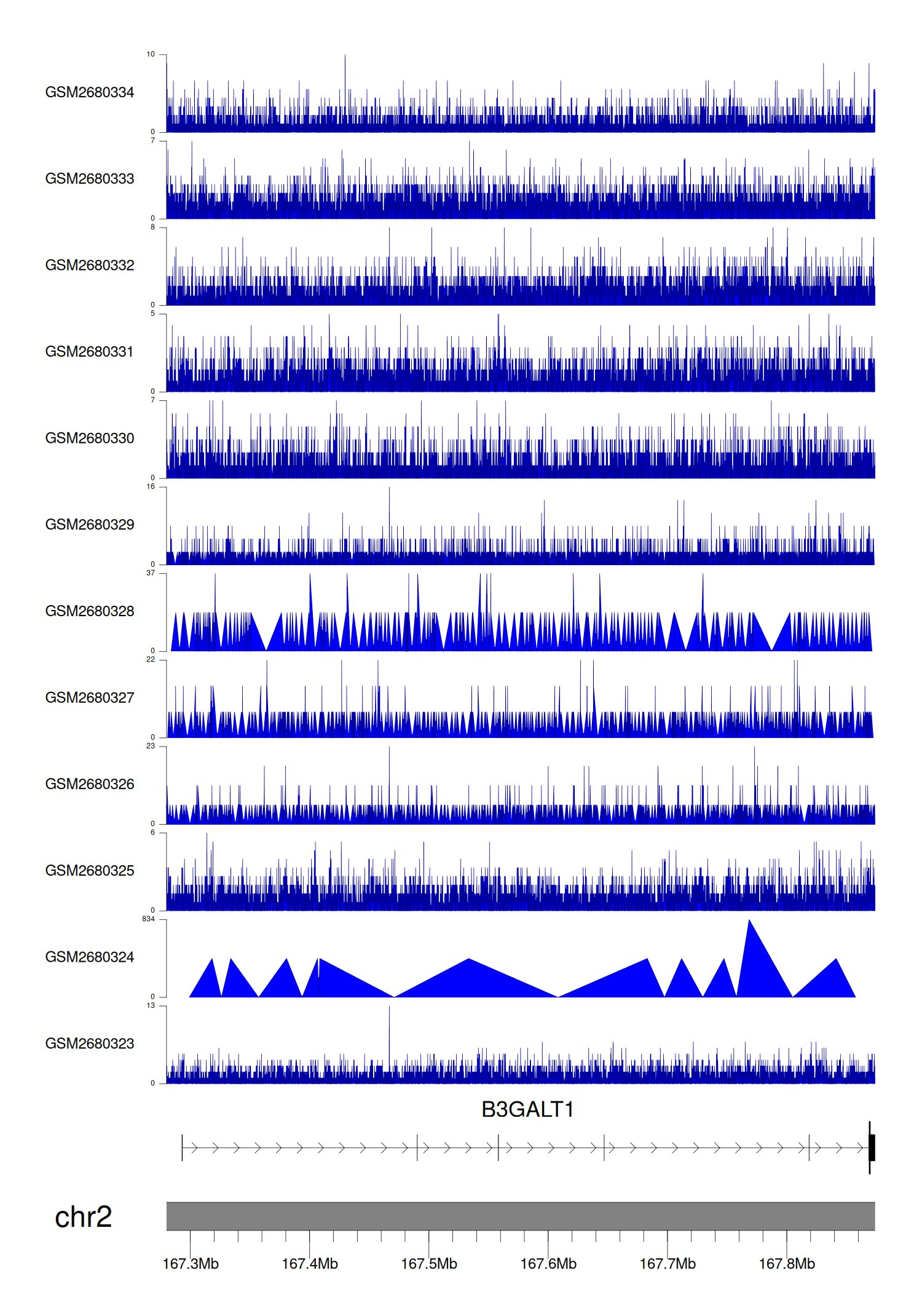 > Dataset: GSE68402 - B3GALT1 peak across samples