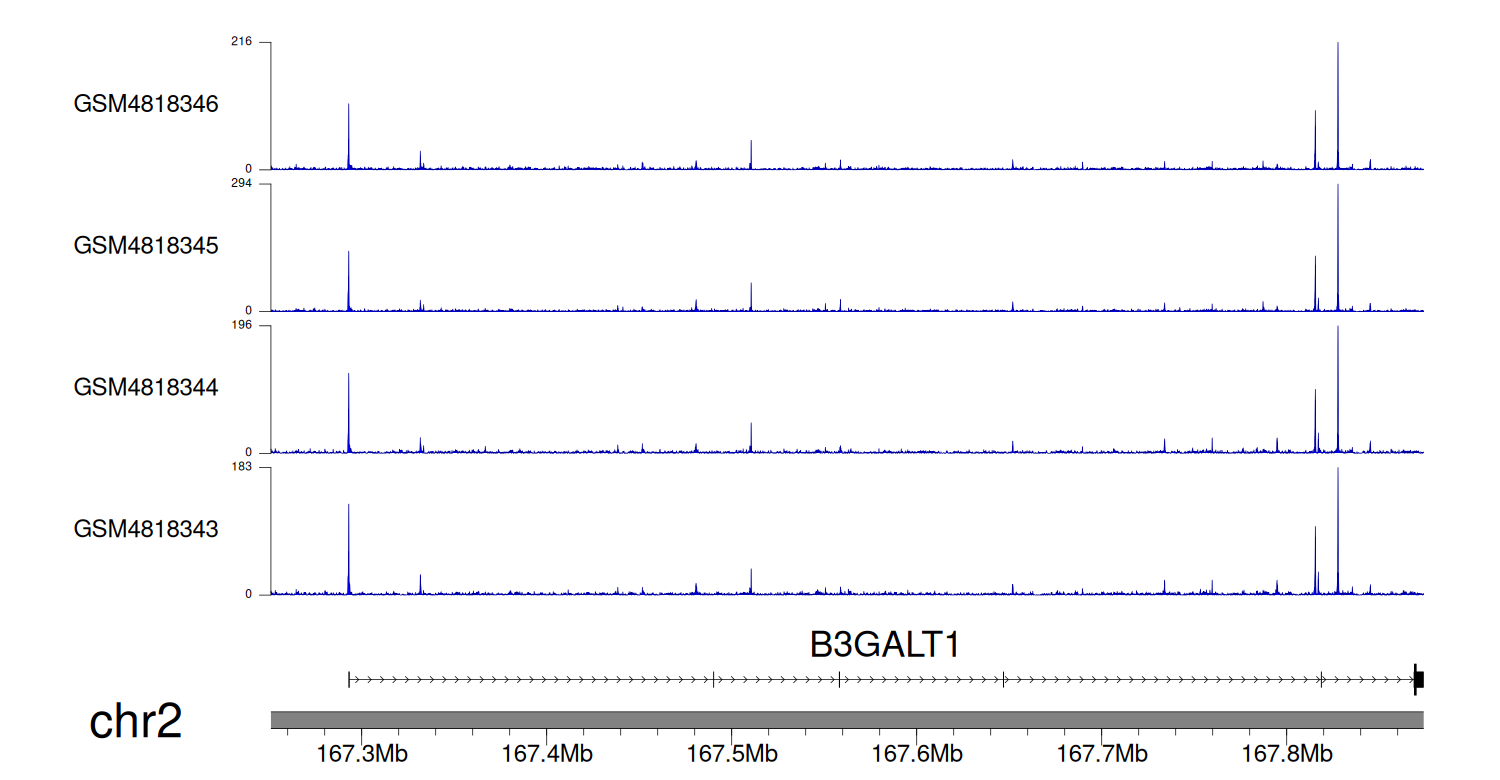 > Dataset: GSE270130 - B3GALT1 peak across samples