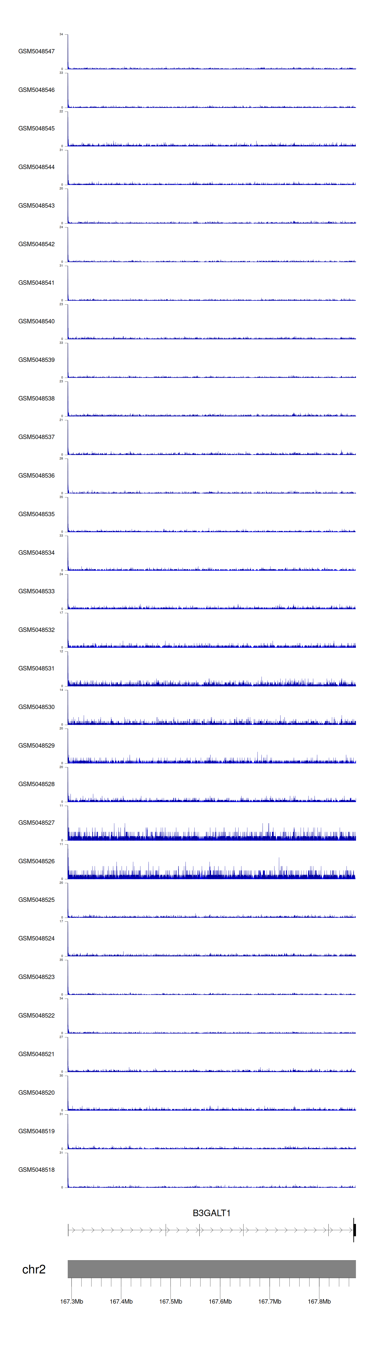 > Dataset: GSE100376 - B3GALT1 peak across samples
