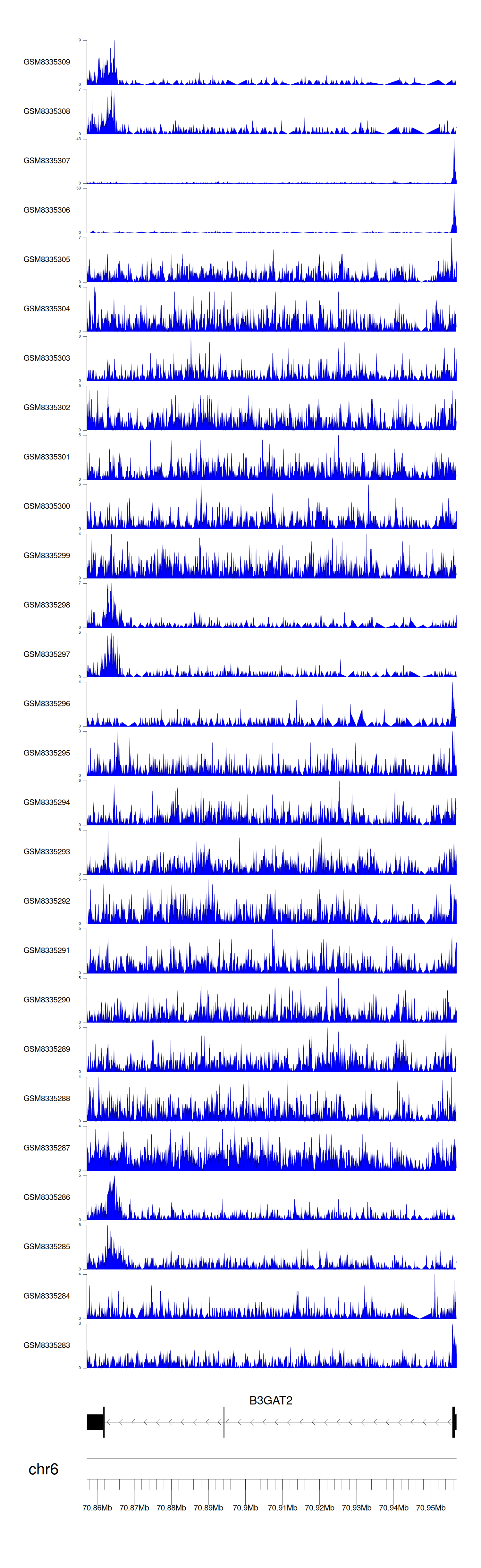 > Dataset: GSE270130 - B3GAT2 peak across samples