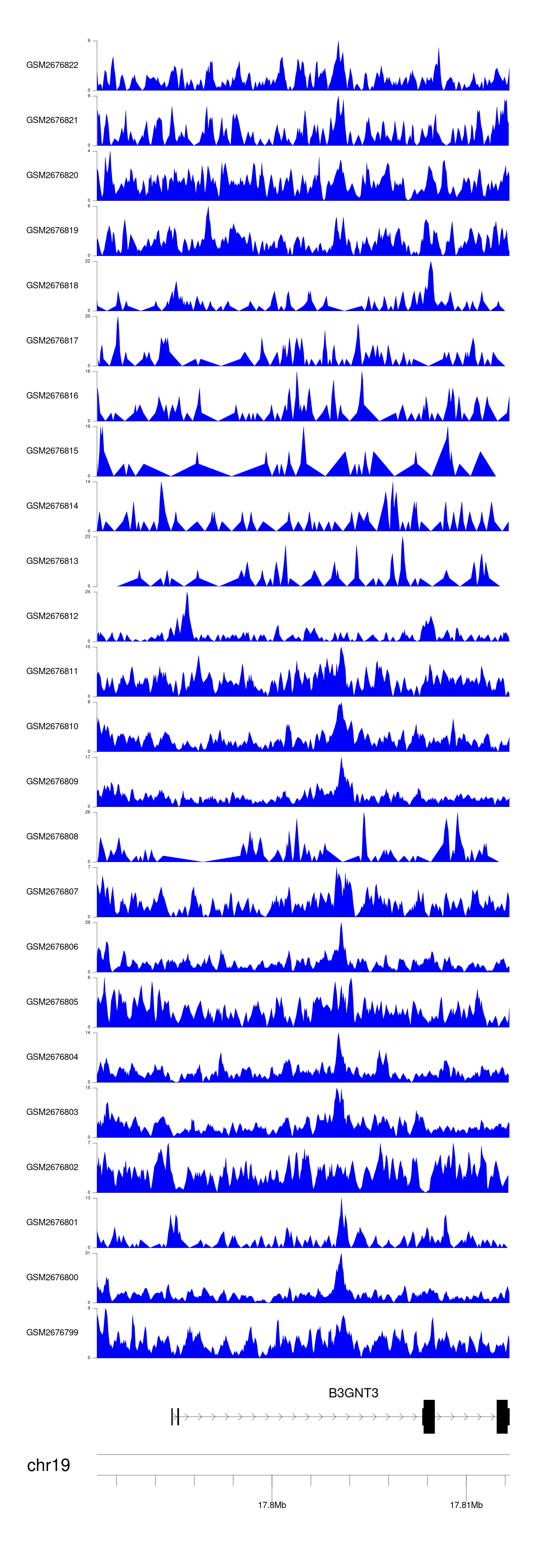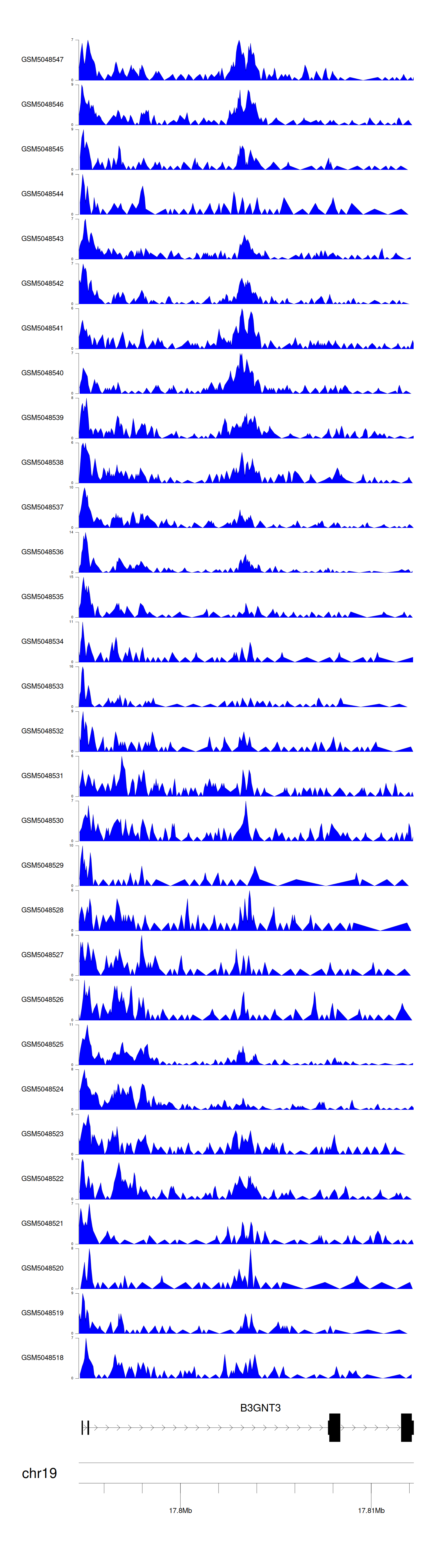 > Dataset: GSE100376 - B3GNT3 peak across samples