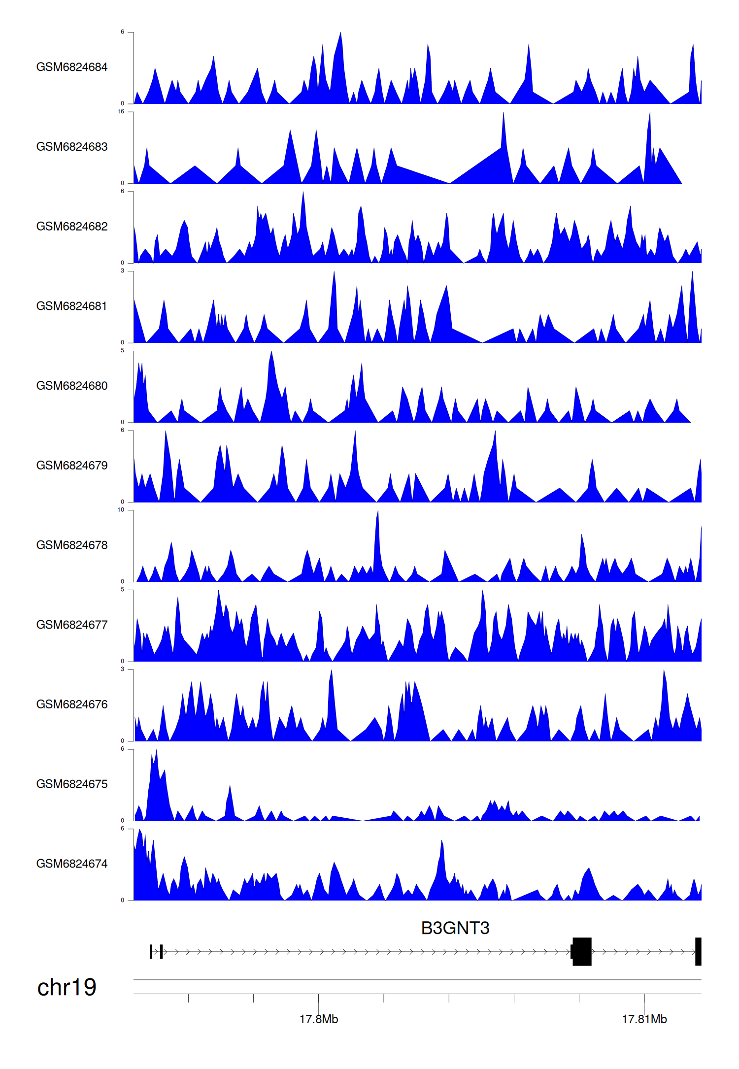 > Dataset: GSE165703 - B3GNT3 peak across samples