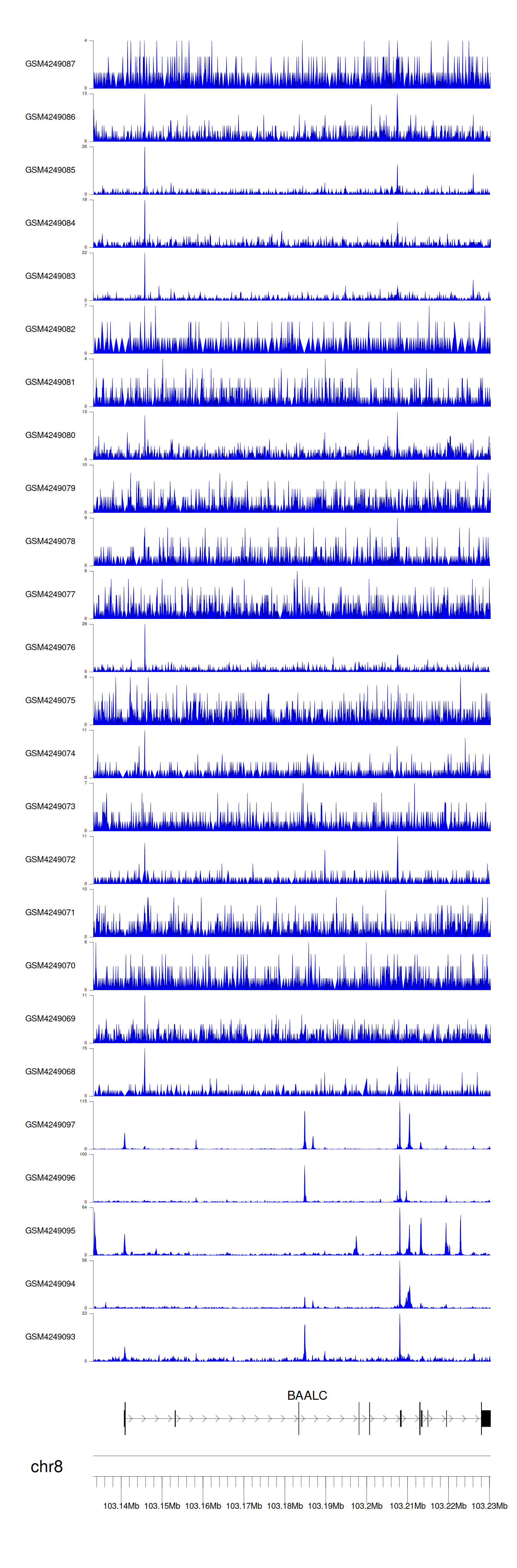 > Dataset: GSE143026 - BAALC peak across samples