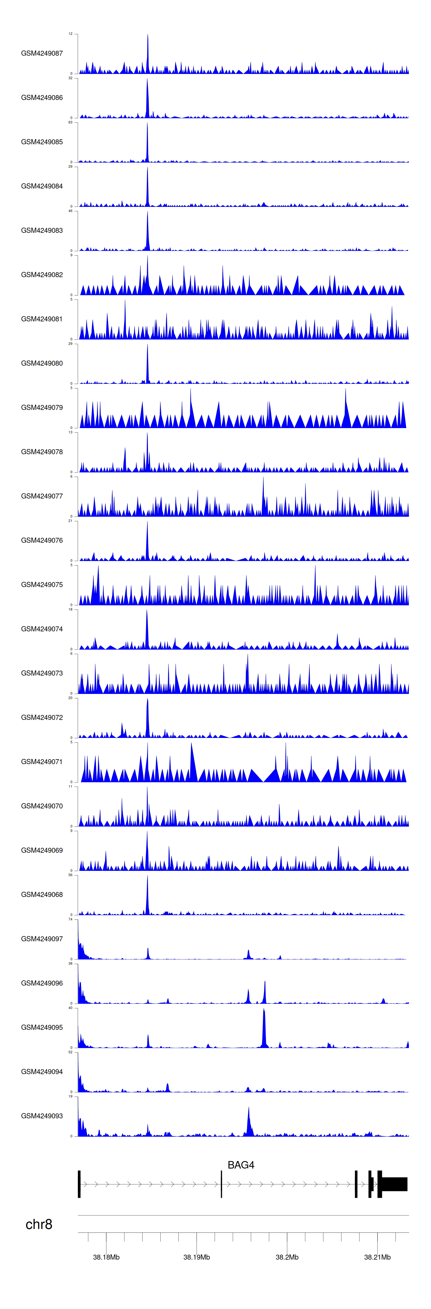 > Dataset: GSE143026 - BAG4 peak across samples