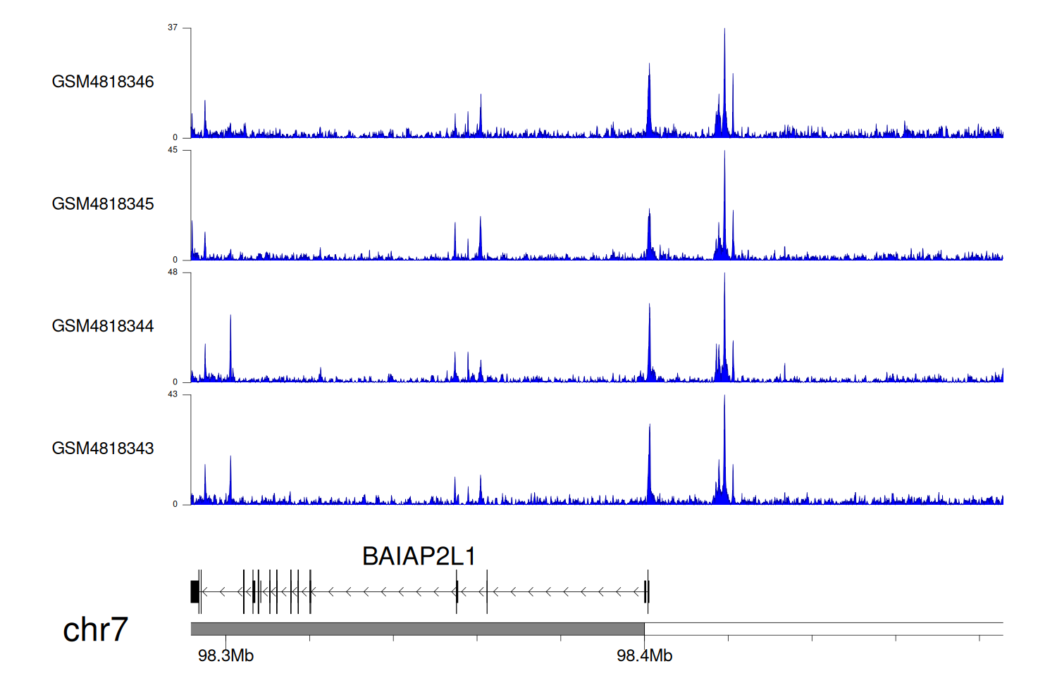 > Dataset: GSE270130 - BAIAP2L1 peak across samples