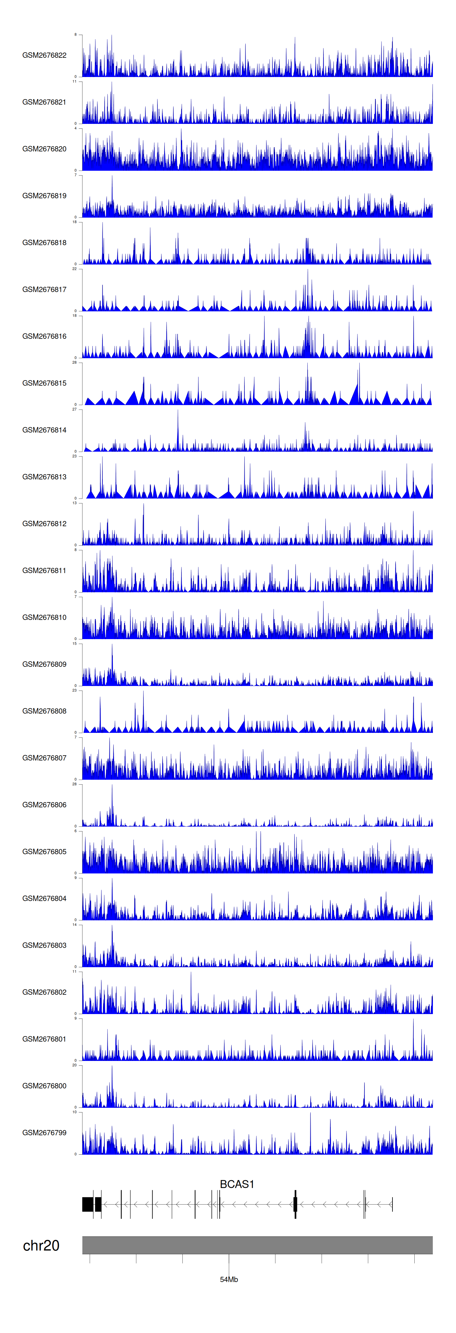> Dataset: GSE100376 - BCAS1 peak across samples