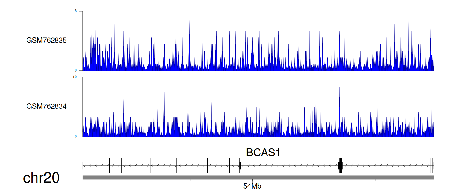 > Dataset: GSE30738 - BCAS1 peak across samples