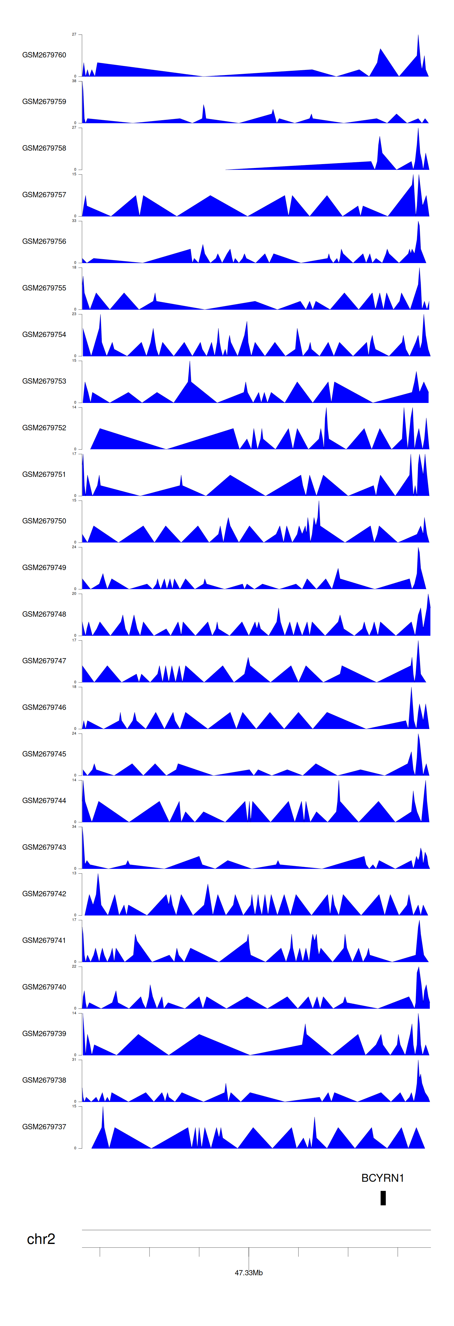 > Dataset: GSE211651 - BCYRN1 peak across samples